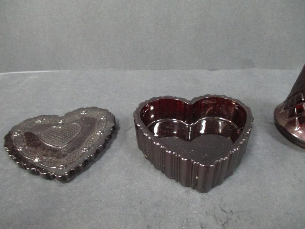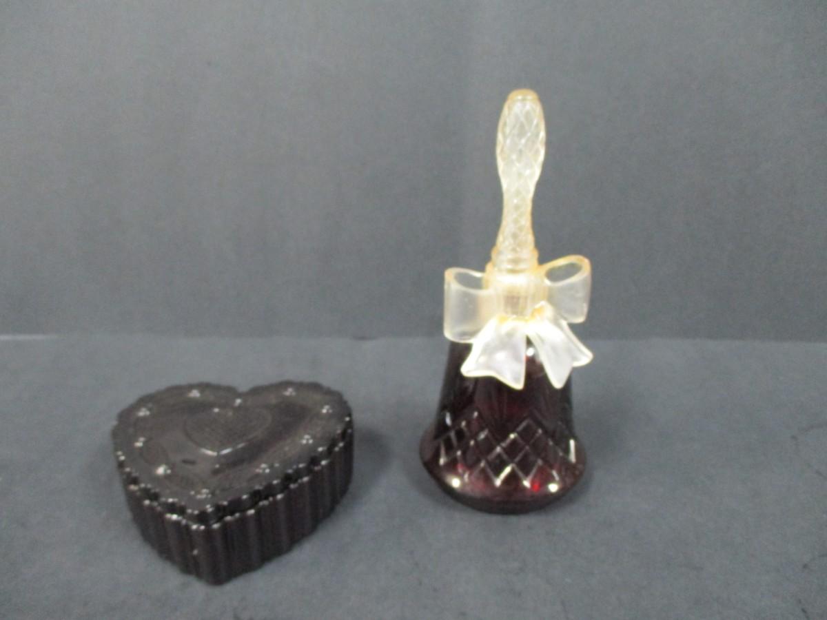 Lot 193 - Cape Cod Ruby Red Avon Bell & Heart Trinket Container