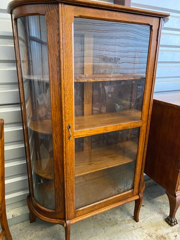 Sturdy, solid piece with removable/adjustable shelves, no key, but unlocked