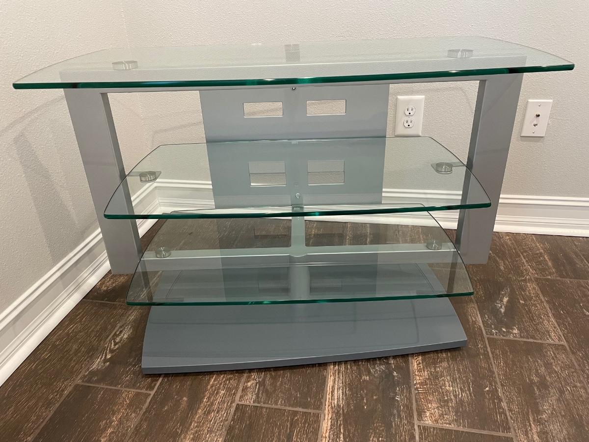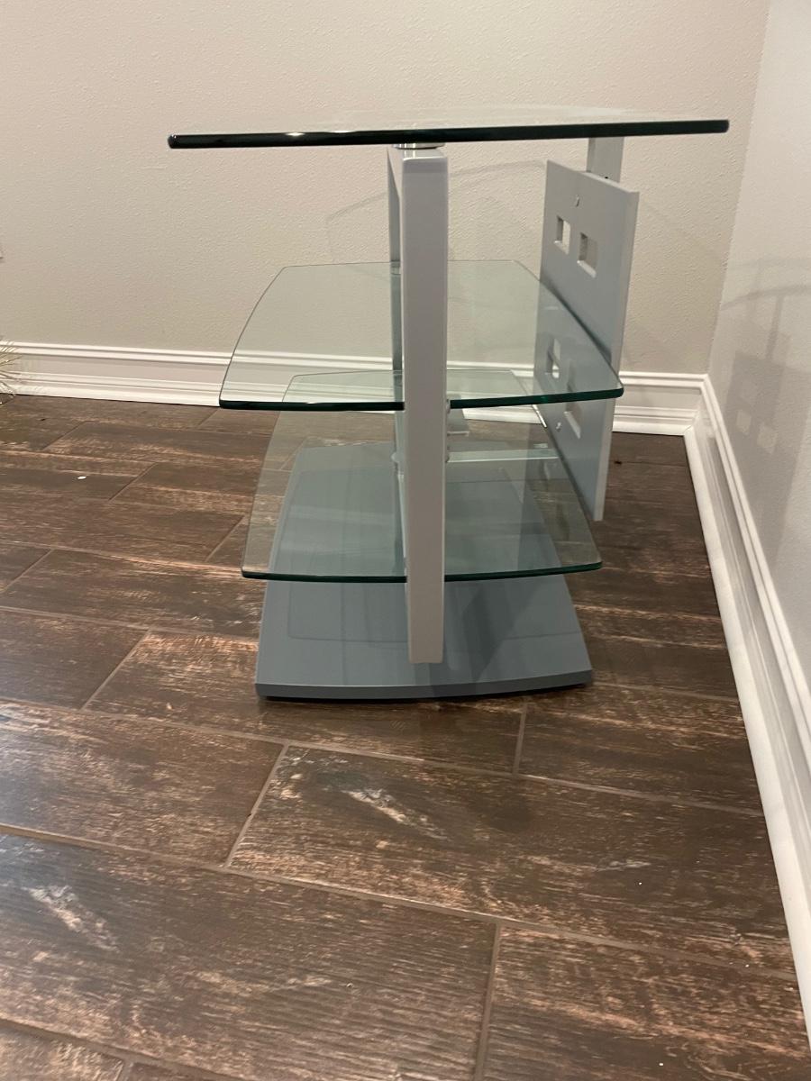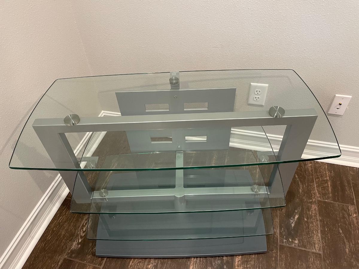 Lot 193. Glass & Steel TV Stand -- it swivels