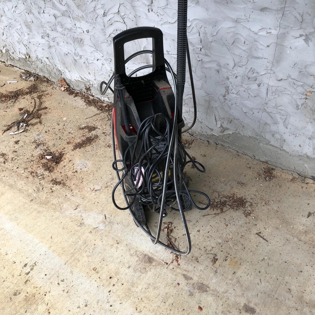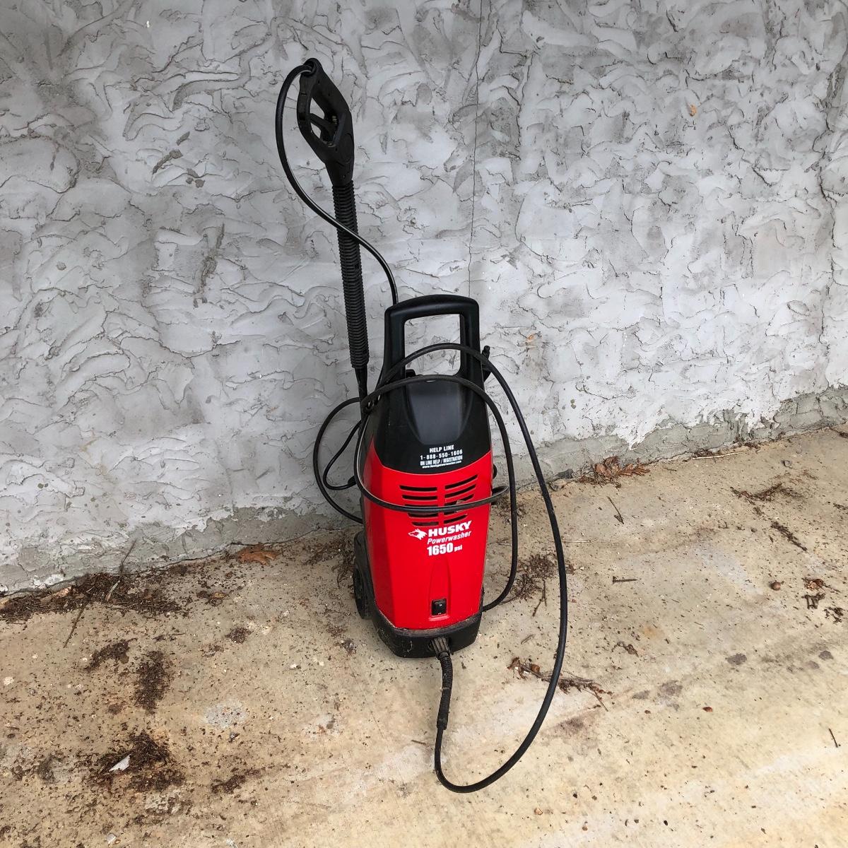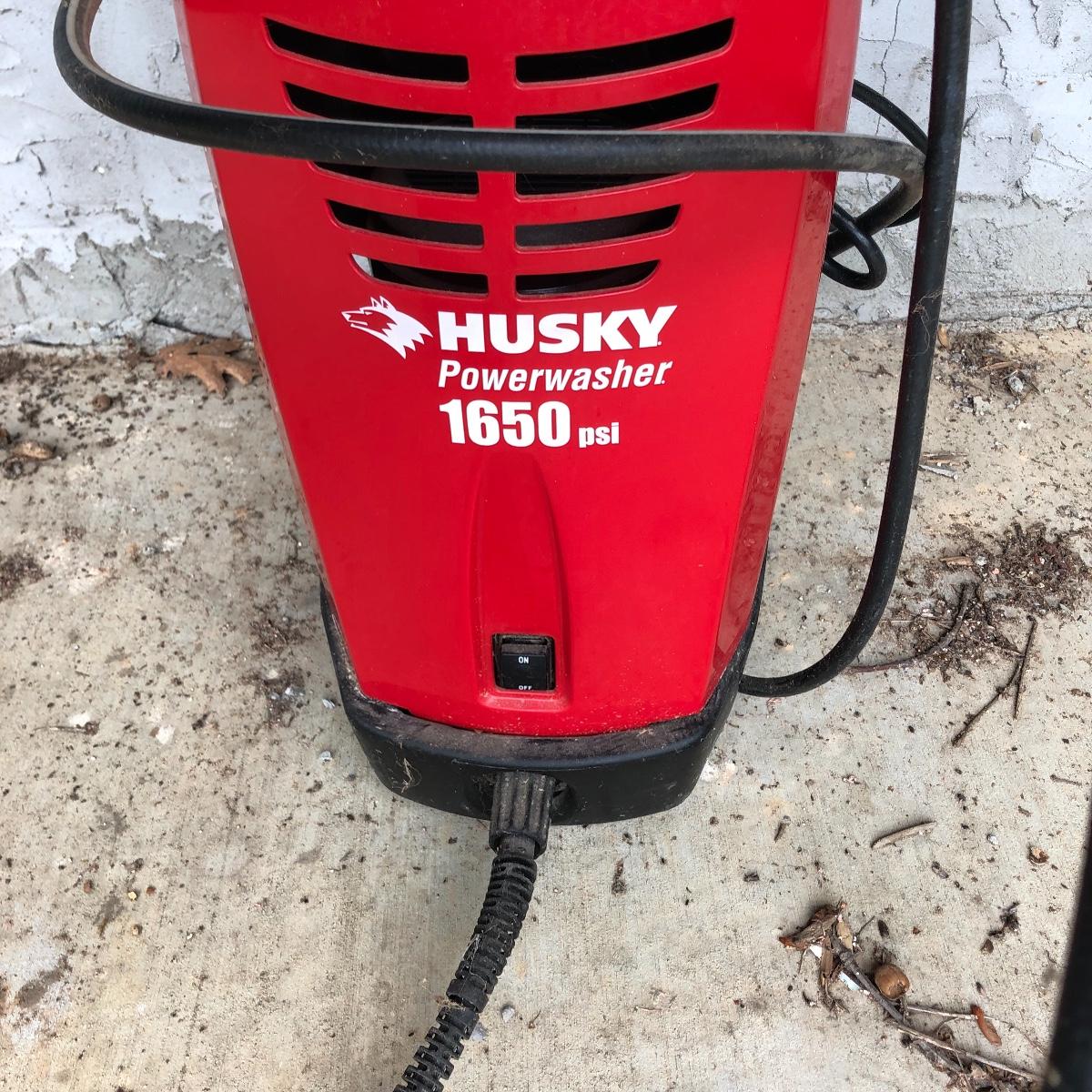 You can clean up your home inside and out with this Husky 1650 PSI electric pressure washer. Machine measures 10” x 14” x 33” and powered on when tested.