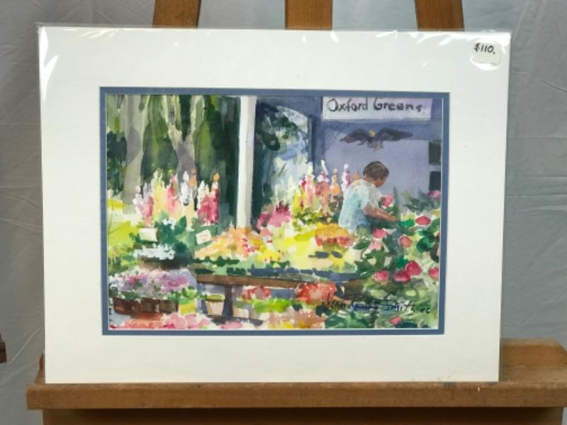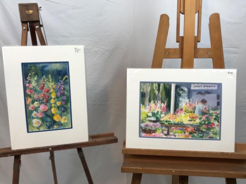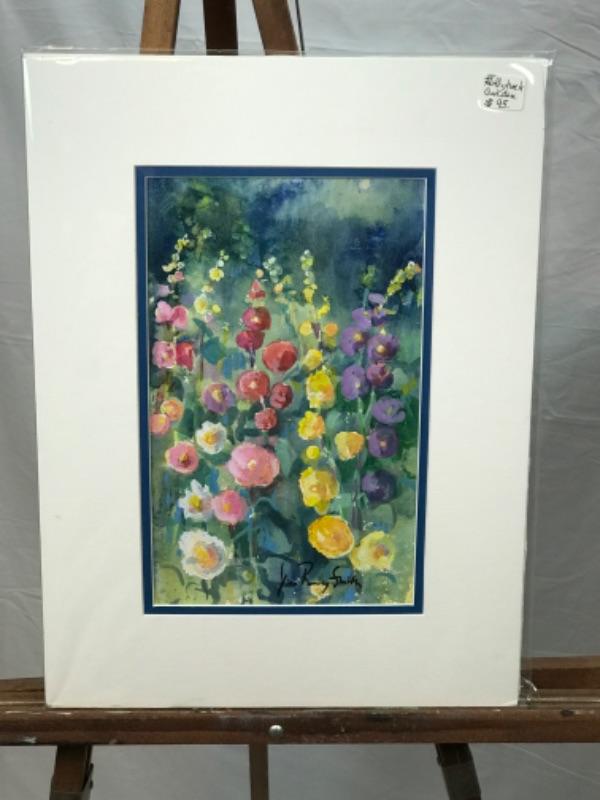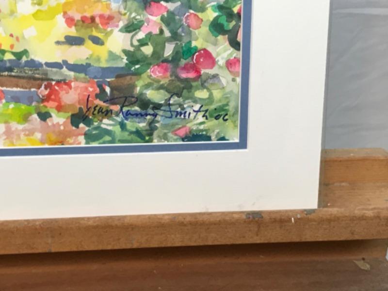 Jean Ranney Smith signed original watercolor paintings “Oxford Greens” measures 18”x14” and “Hollyhock Garden” measures 16”x12”