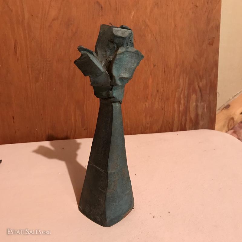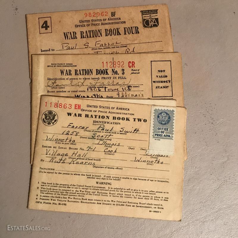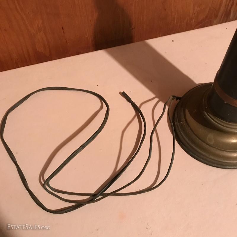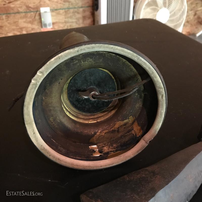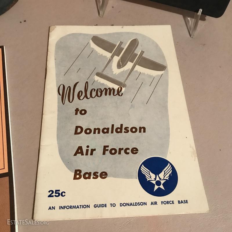 Flight log book from 1930 with few entries. 3 War Ration booklets, An Army and Air Force pamphlet, large steal mass with "Wessel 4140" written on it. Lamp made from what appears to be ammo and a copper band with wording that reads "They shall beat their swords into plowshares and their spears into pruning hooks. Nations shall not lift up sword against nation. Neither shall they learn war anymore." Wiring on lamp needs to be redone. Due to the weightiness of this lot is only available for local pick up in Flat Rock, NC.