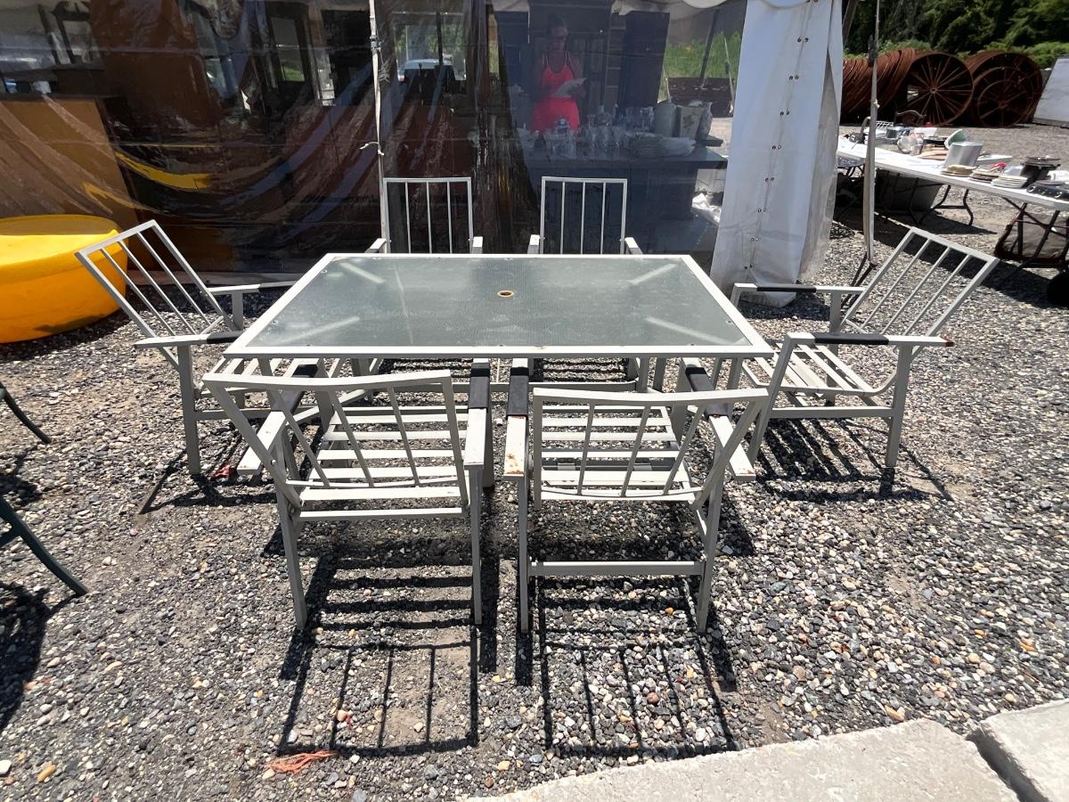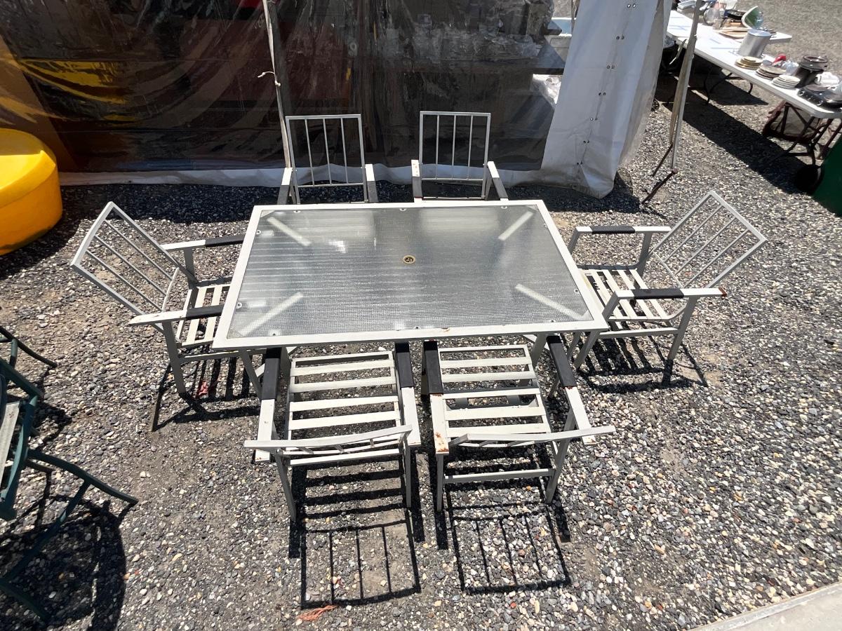 Lot# 193 Outdoor Metal Table with Plexiglass Top & Six Chairs