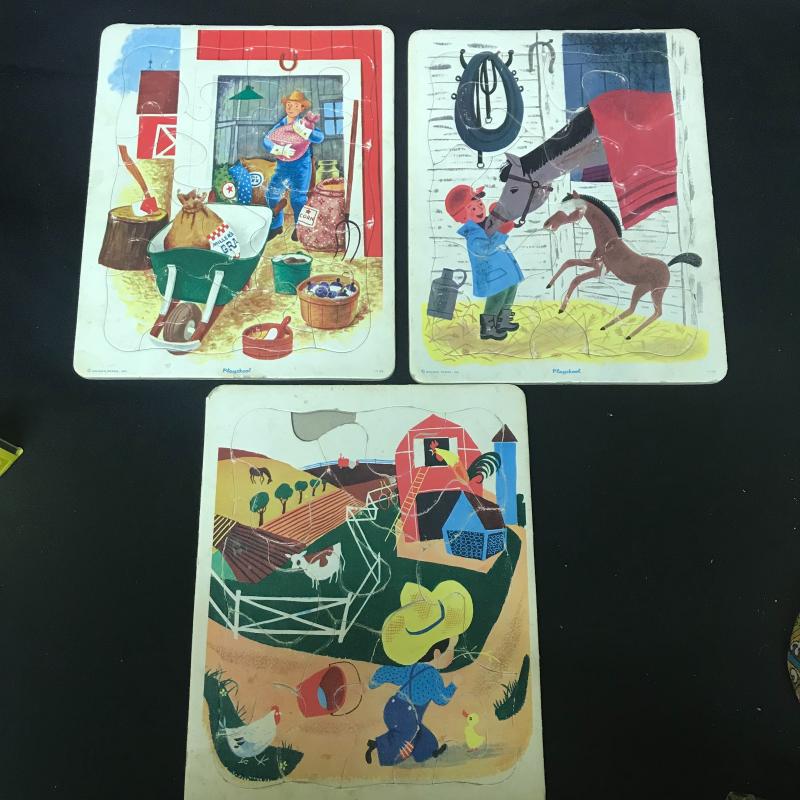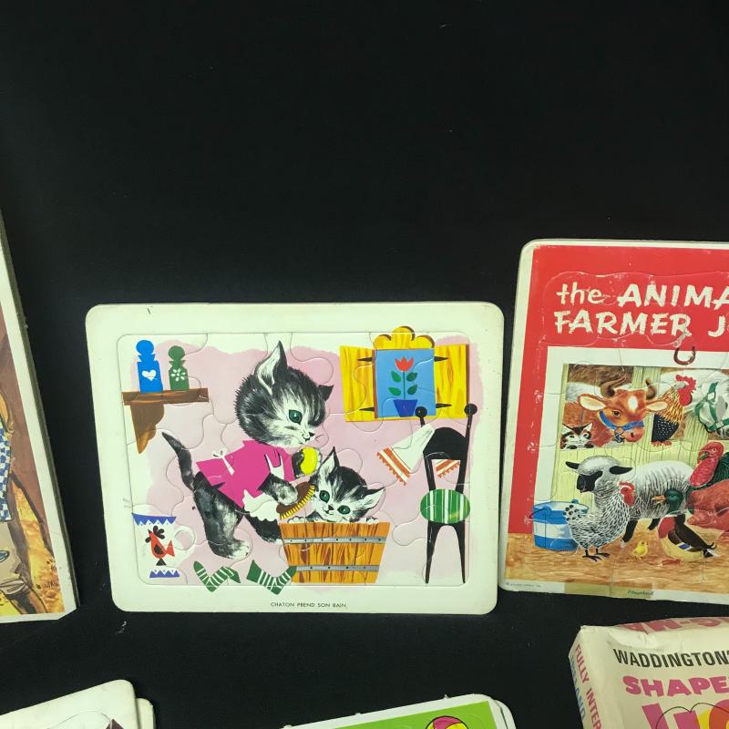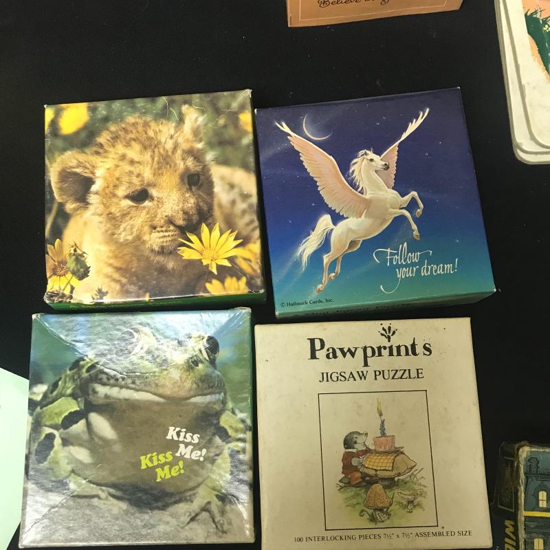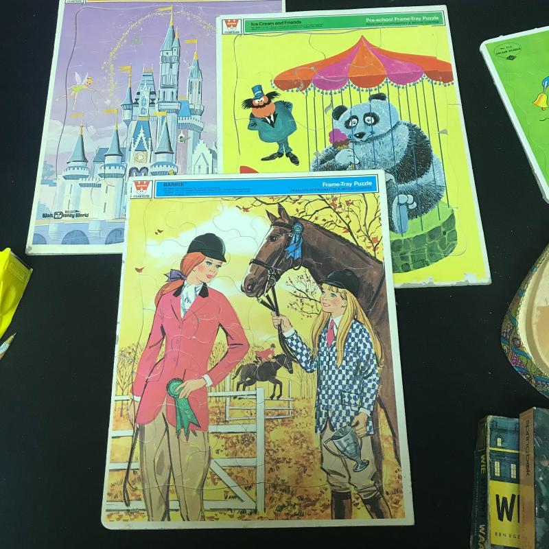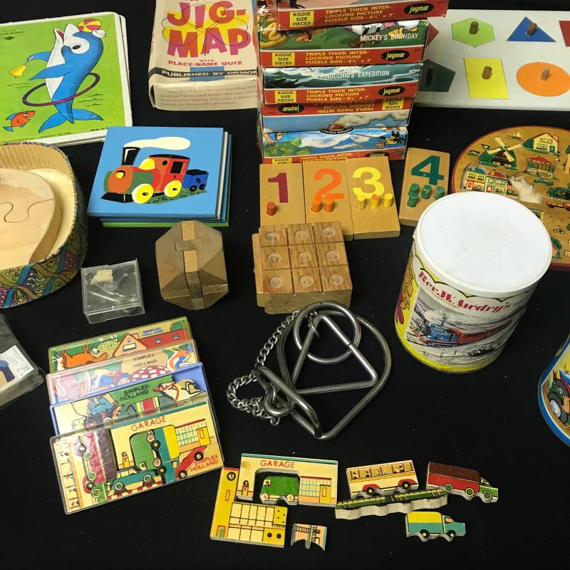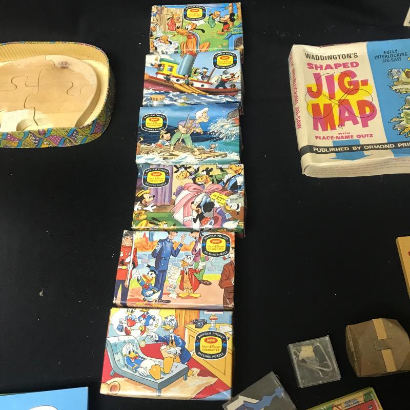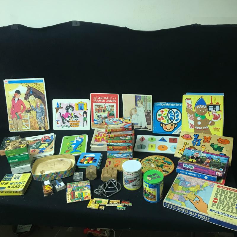 Children, adult and international puzzles. Walt Disney vintage puzzles and many more. No guarantees that all pieces are included! Some pix show a piece missing here and there but this is a great selection of all kinds of puzzles. Including metal ones too. Shipping available.