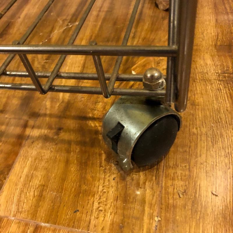 Rolling wire shelves measure 17” deep x 19” wide x 19” tall