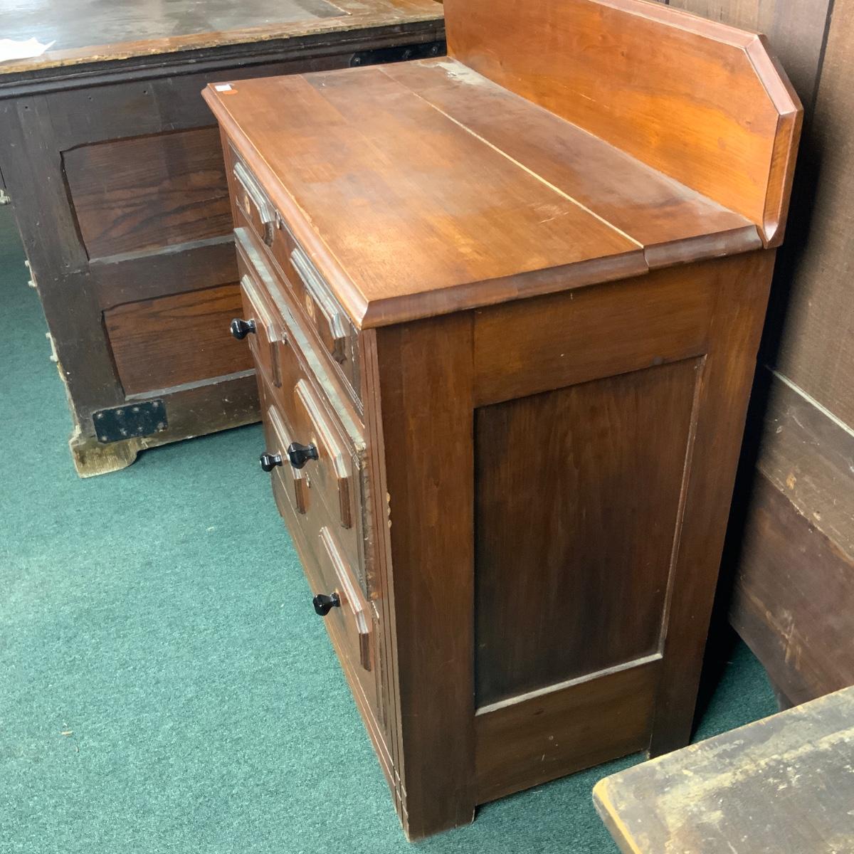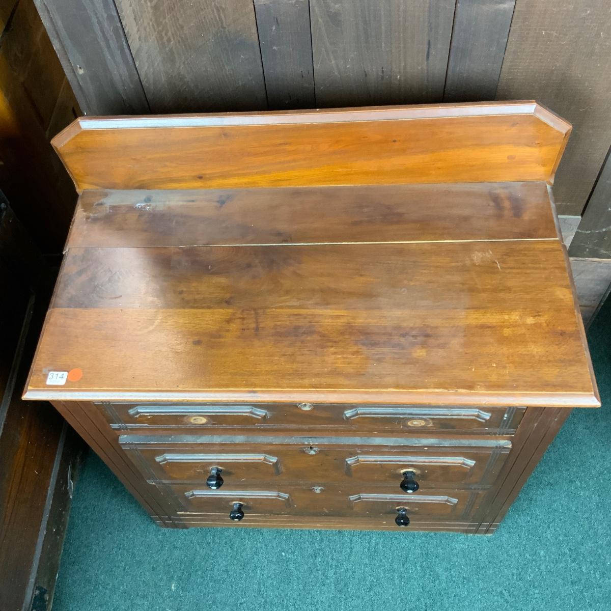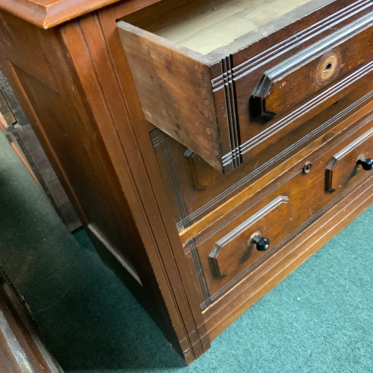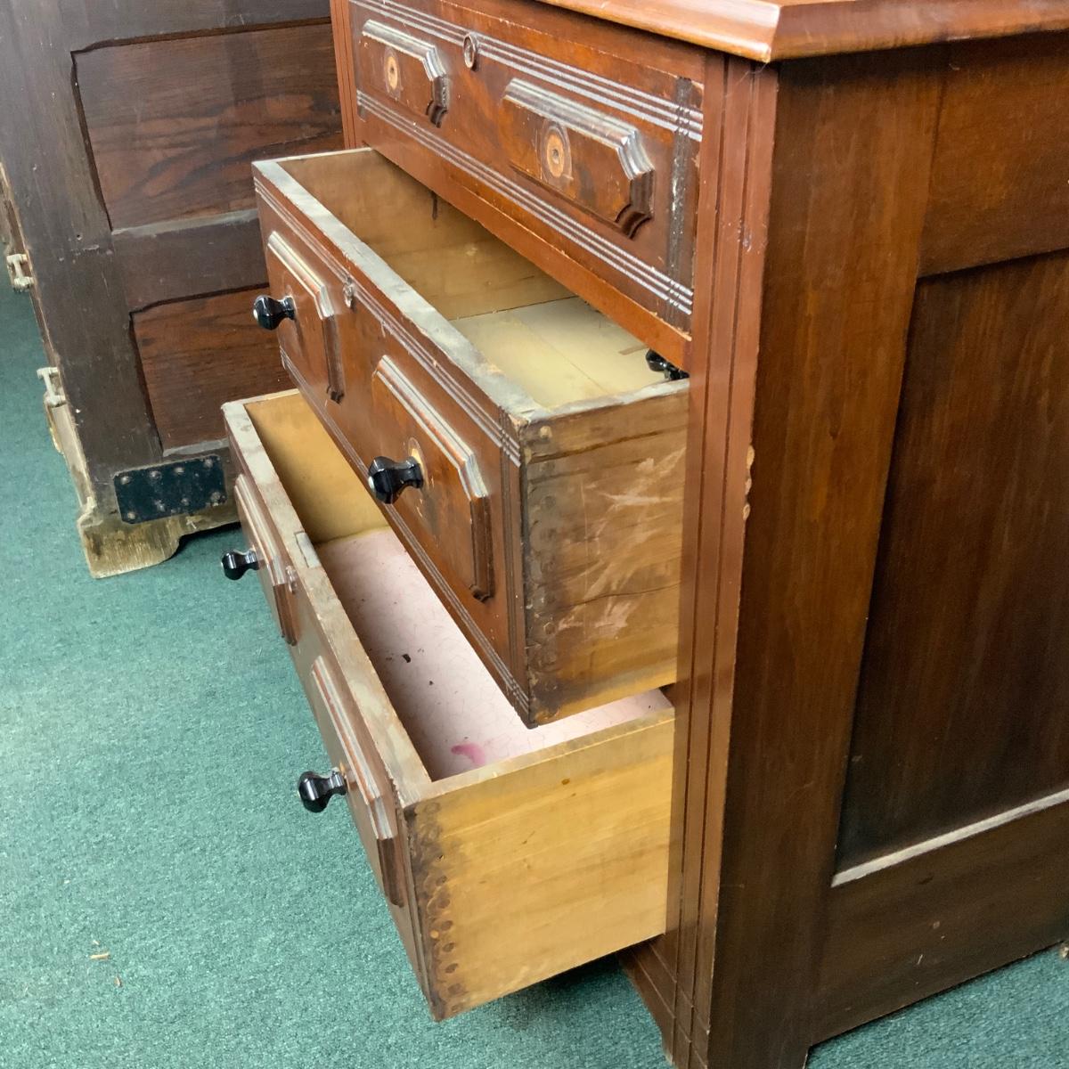 Three Drawer Chest. Attractive piece. Needs new pulls and some restoration work. //::\\ Please see photos for details and condition. No attempt has been made to hide any imperfections. All items listed in this auction are warehouse items, and need to be cleaned. A majority of the items need restoration as well. All items are sold AS IS and WITHOUT GUARANTEE. If you are uncertain about an item, DO NOT BID. Due to the nature of this online auction in-person inspection is HIGHLY recommended. All Sales are FINAL. Pick Up Times are FIRM. Please confirm with your own schedule that you can pick up in the scheduled times listed in the Terms and Conditions. Any questions please message the auctioneer. DO NOT Contact The Harp Gallery.