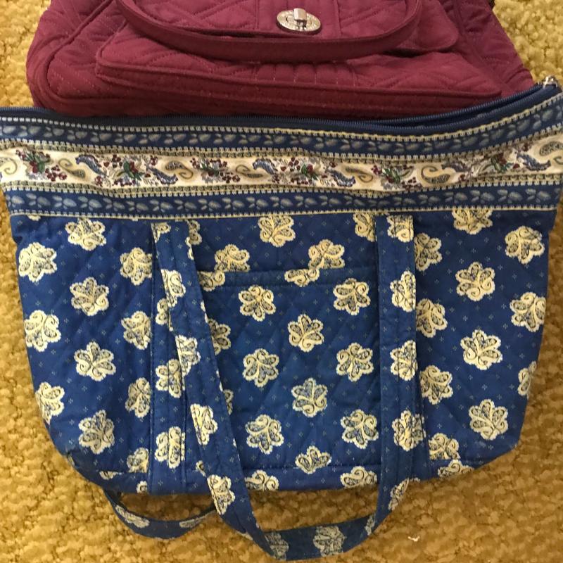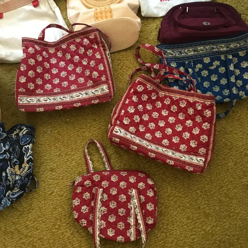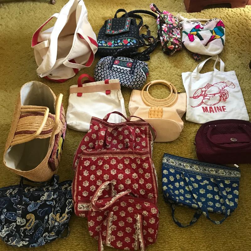 Lot includes 15 purses, mostly soft side and lots of patterned Vera Bradley and Sherif quilted bags. Canvas tote and a few straw. All in good to great condition. Shipping available.