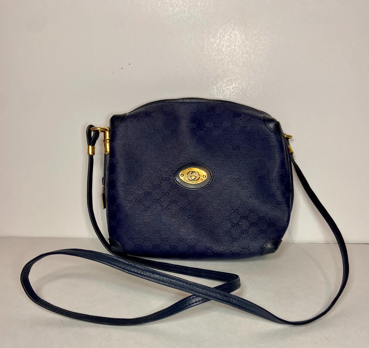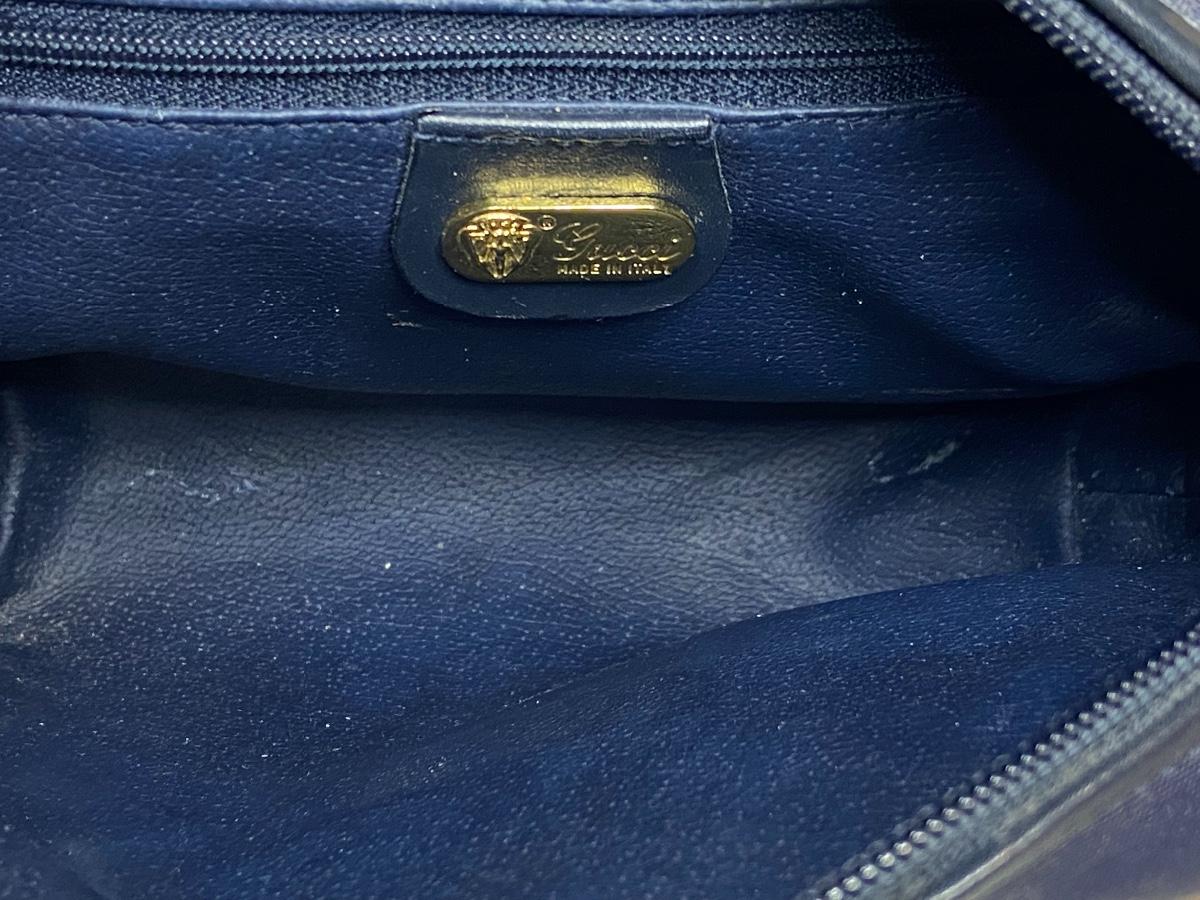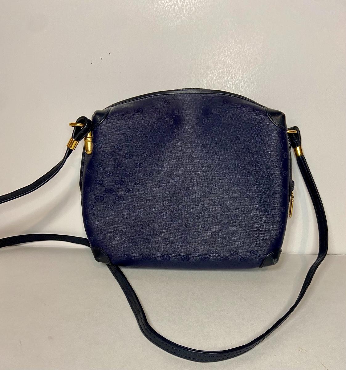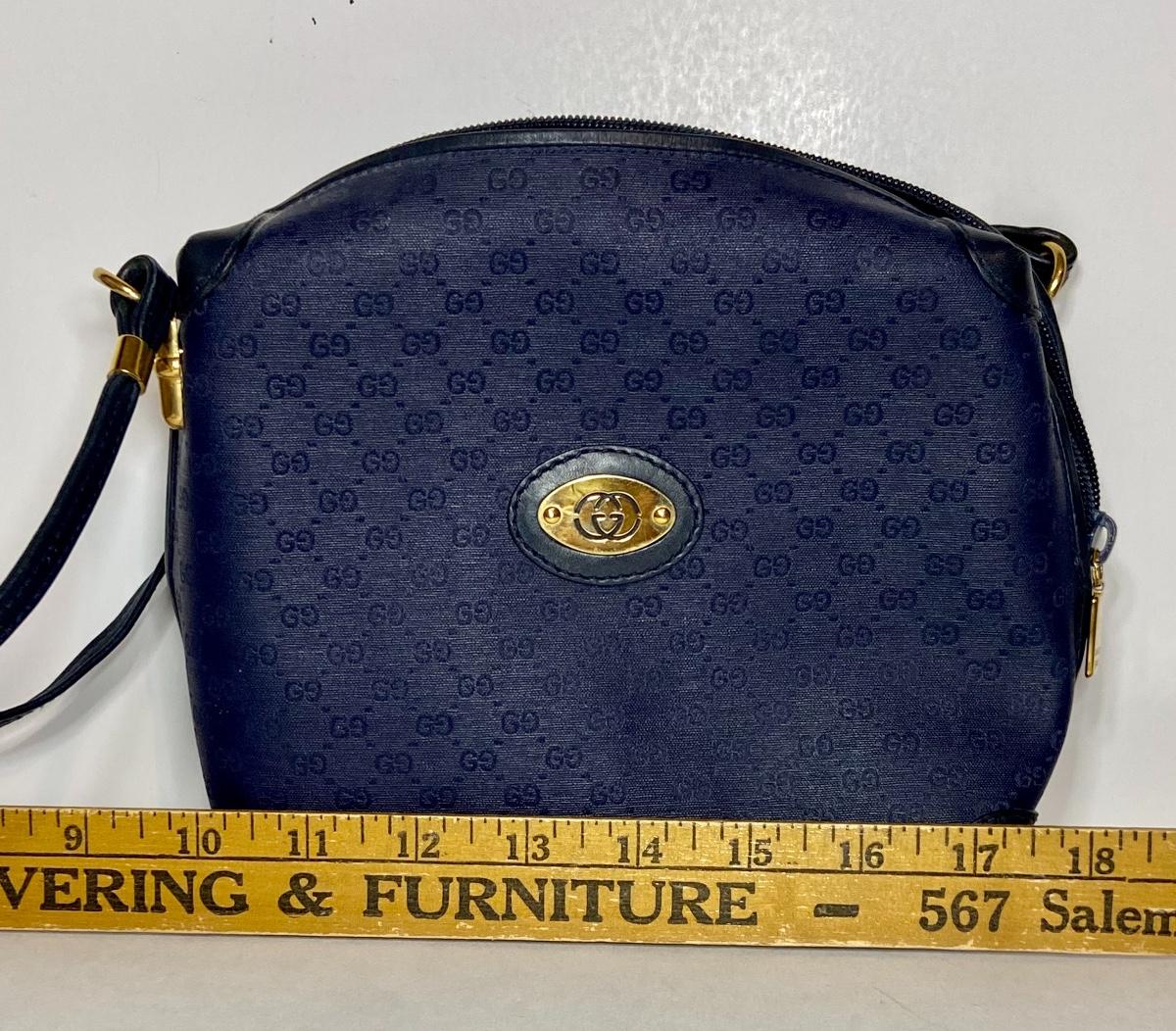 Navy Blue Vintage Gucci bag. This is small in size, and strap is not long enough to be crossbody. We can't authenticate any of the handbags. We can only list according to the brand and the age shown. Please use your judgement and see all pictures as they are the best representation of the items. The pictures show condition, measurements if taken, and what is included in the lot. Due to the large amount that we photograph and the time frame, we are not always able to take measurements. All items unless noted, are pre-owned and have been used. If you purchased furniture, you must bring help. We do not allow one person to carry large furniture out on their own. Bring help, tools and a truck for the safety of our client’s homes, and your personal safety. Company policy. Thank you