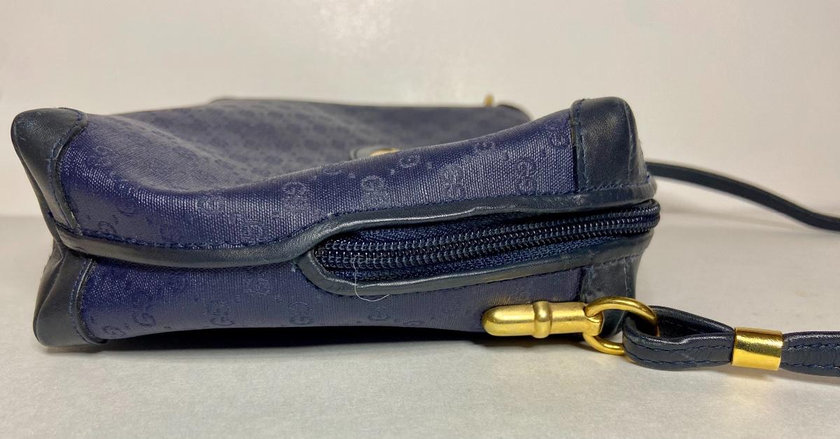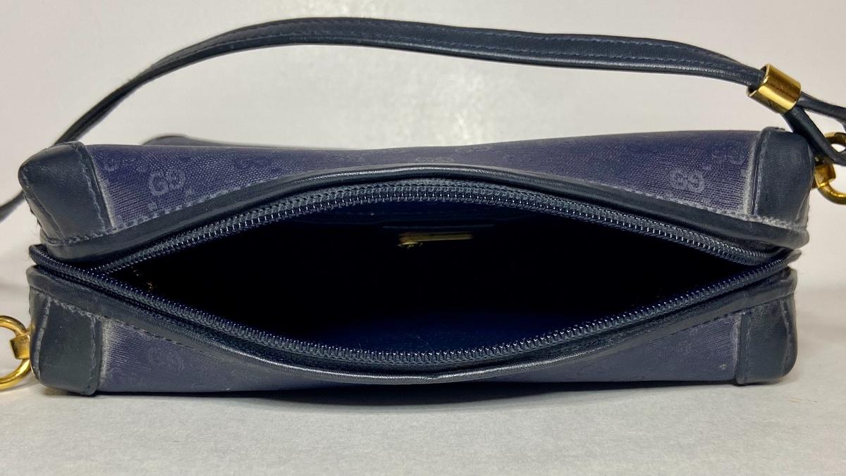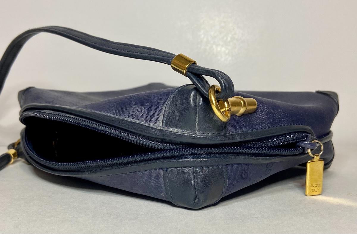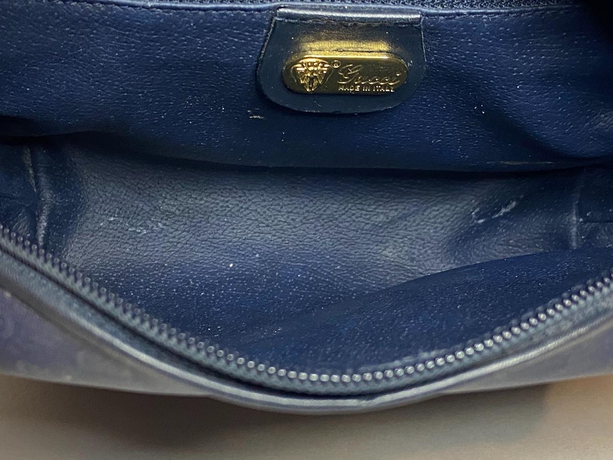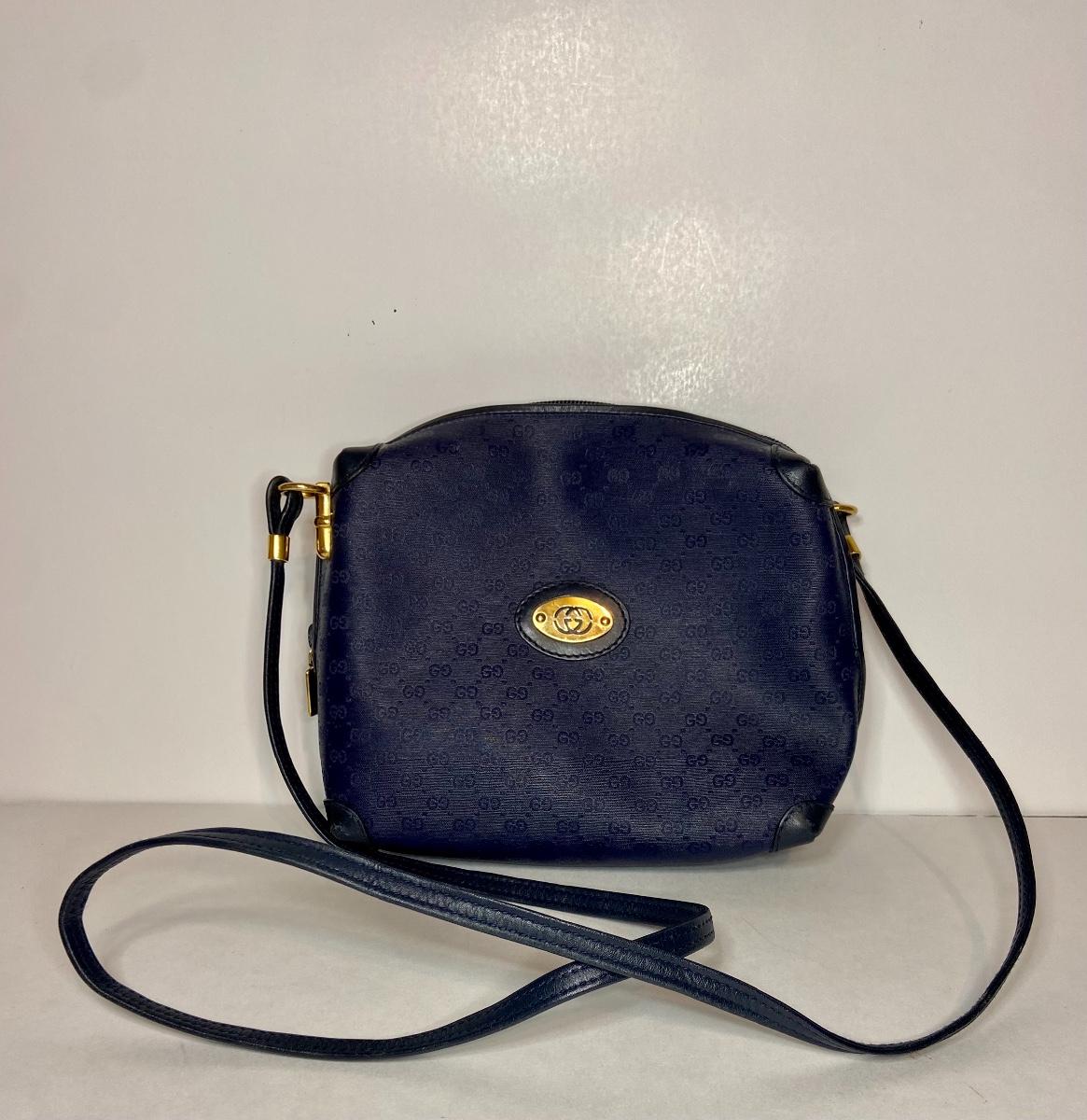 Navy Blue Vintage Gucci bag. This is small in size, and strap is not long enough to be crossbody. We can't authenticate any of the handbags. We can only list according to the brand and the age shown. Please use your judgement and see all pictures as they are the best representation of the items. The pictures show condition, measurements if taken, and what is included in the lot. Due to the large amount that we photograph and the time frame, we are not always able to take measurements. All items unless noted, are pre-owned and have been used. If you purchased furniture, you must bring help. We do not allow one person to carry large furniture out on their own. Bring help, tools and a truck for the safety of our client’s homes, and your personal safety. Company policy. Thank you