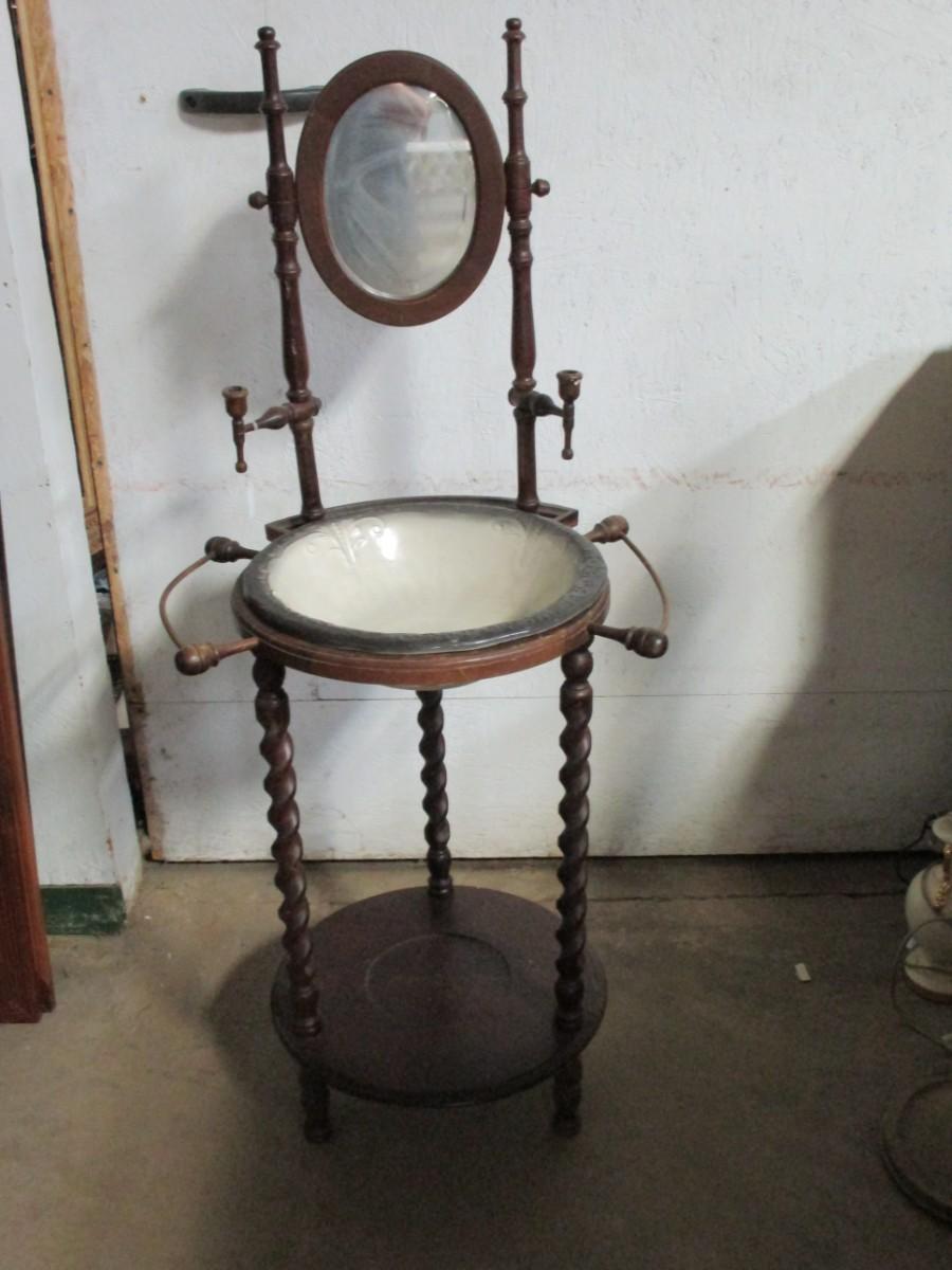 Lot 193 - Vintage Walnut Barley Twist Wash Stand with Porcelain Wash Basin