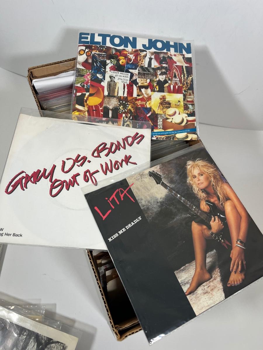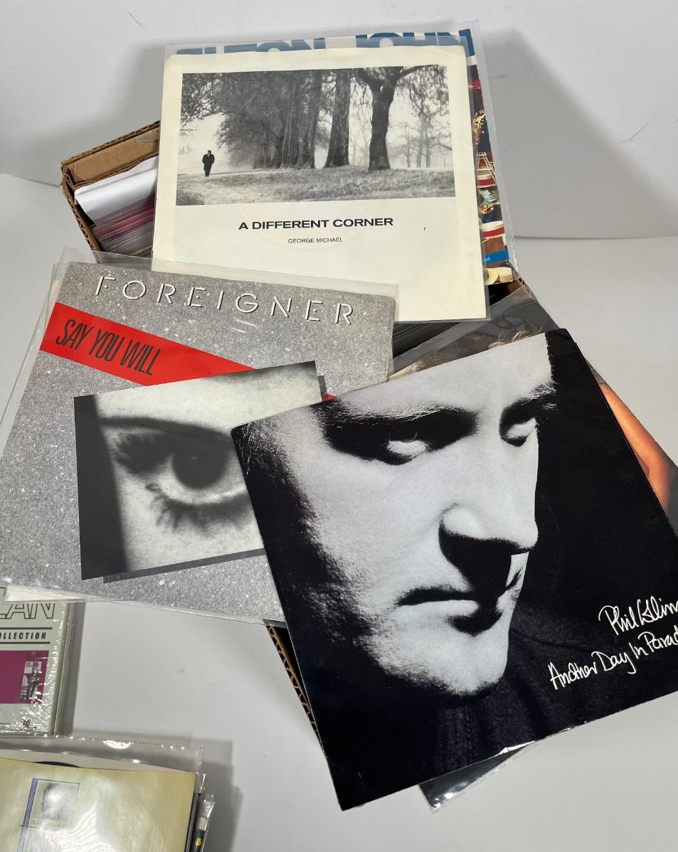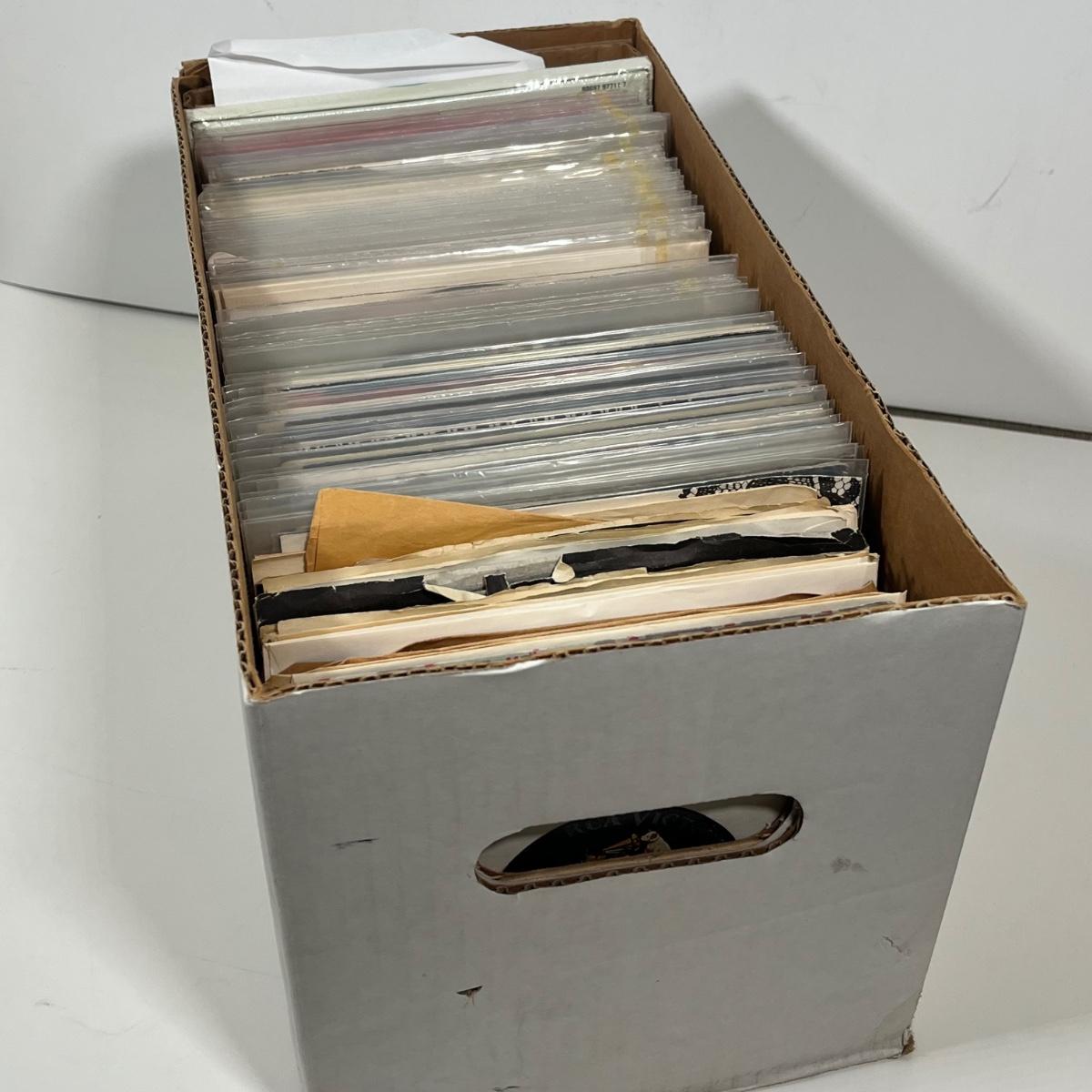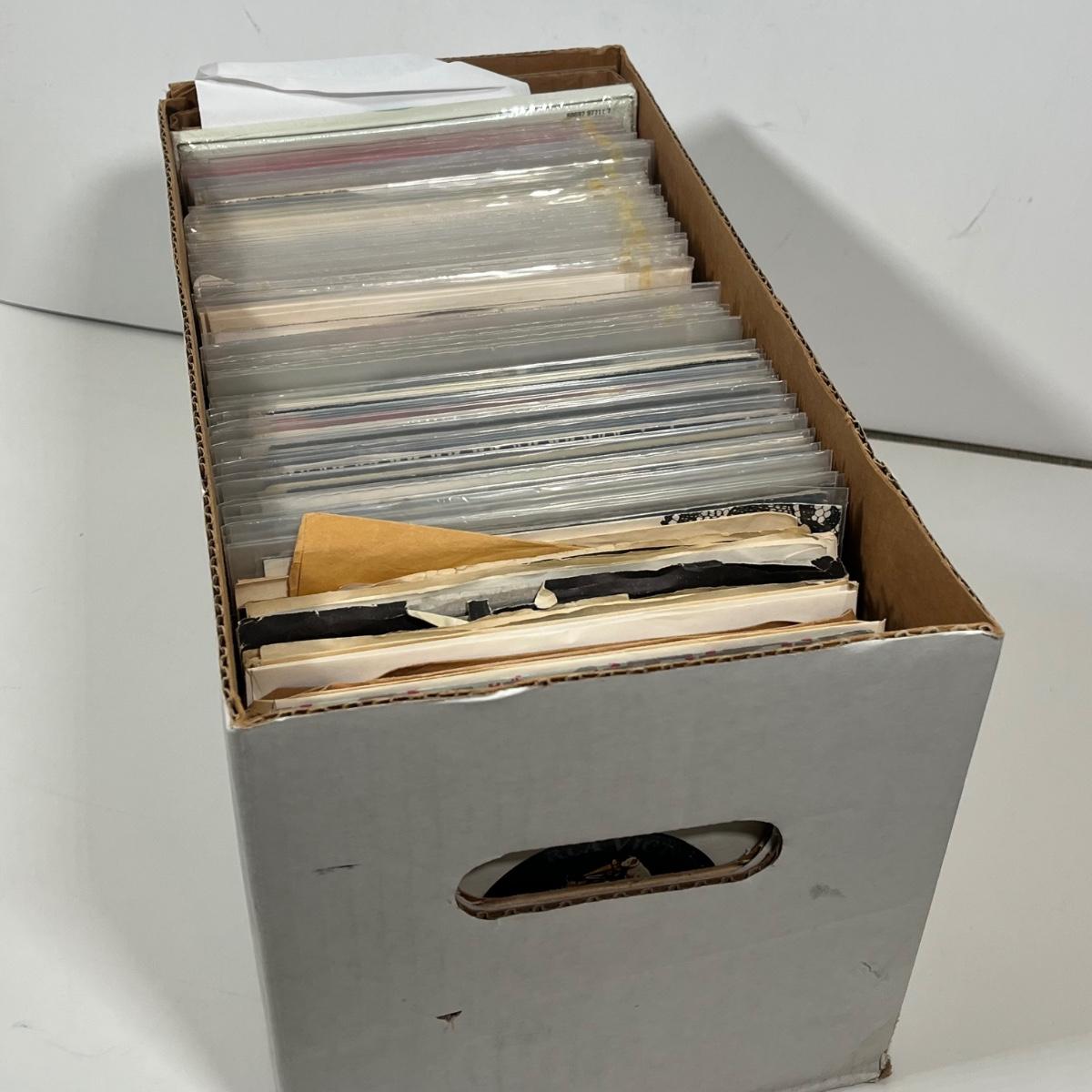 LOT 193B: Box of 45s Singles (Dozens of Vinyl Records) - Sealed Bob Dylan Set and More