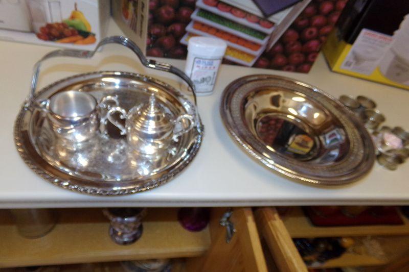 LOT 194 CHRISTMAS DISHES & SILVER PLATED SERVE WARE