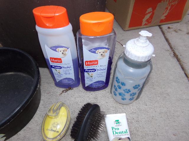 LOT 180 TRASH CAN, DOG ITEMS & SUPPLIES