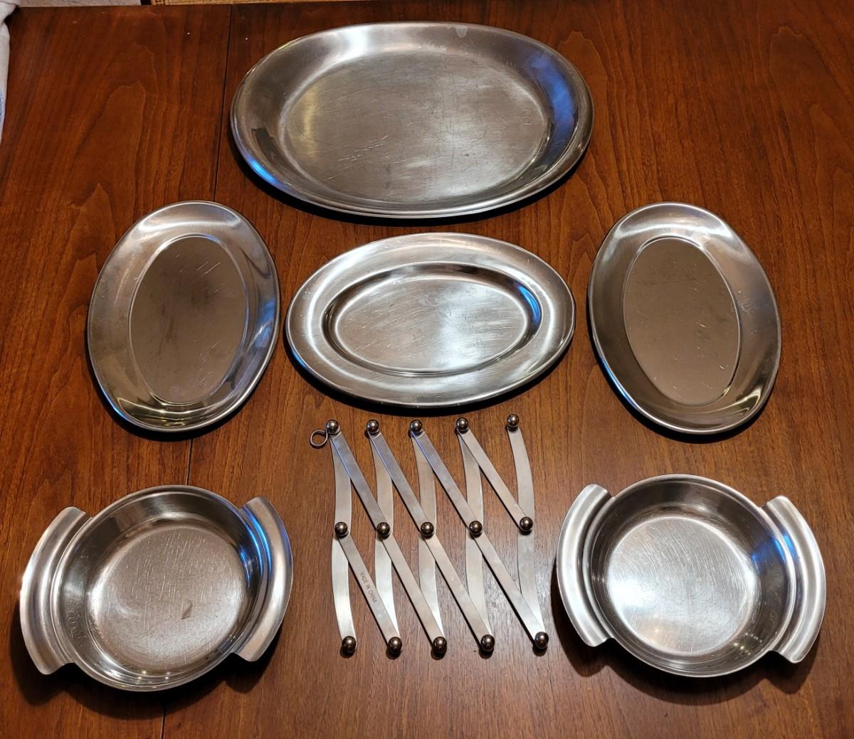 Lot 194: Stainless Platters Serving Bowls and Accordian Hot Pad