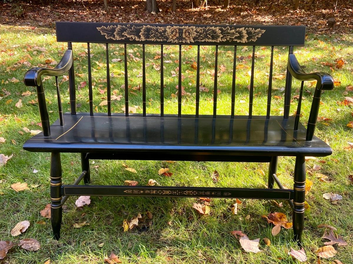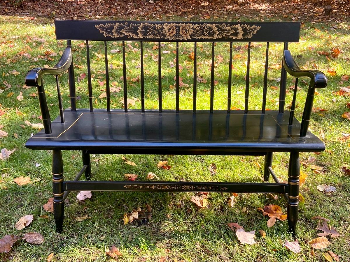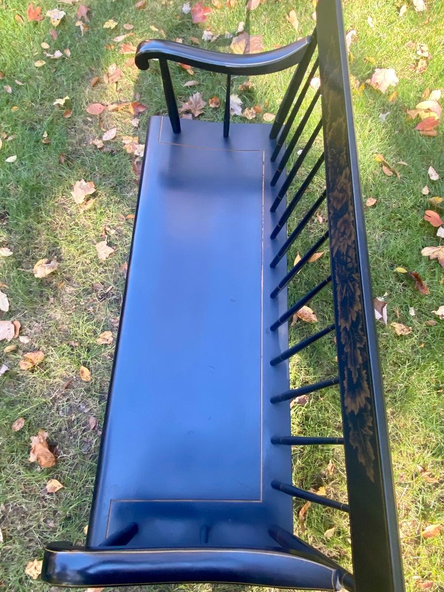 Sturdy, black w/ gold accents, marked on back as seen in pictures. 45"L x 16.5"W x 33"H. Please see all pictures as they are the best representation of the items. The pictures show condition, measurements if taken, and what is included in the lot. Due to the large amount that we photograph and the time frame, we are not always able to take measurements. All items unless noted, are pre-owned and have been used. If you purchased furniture, you must bring help. We do not allow one person to carry large furniture out on their own. Bring help, tools and a truck for the safety of our client’s homes, and your personal safety. Company policy. Thank you.