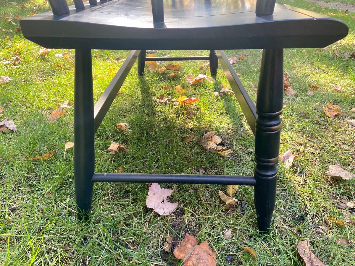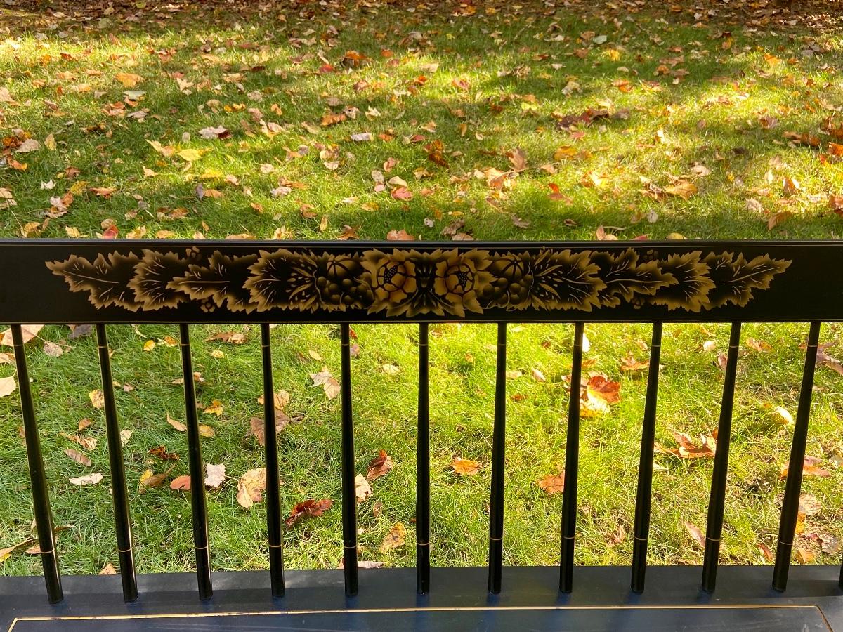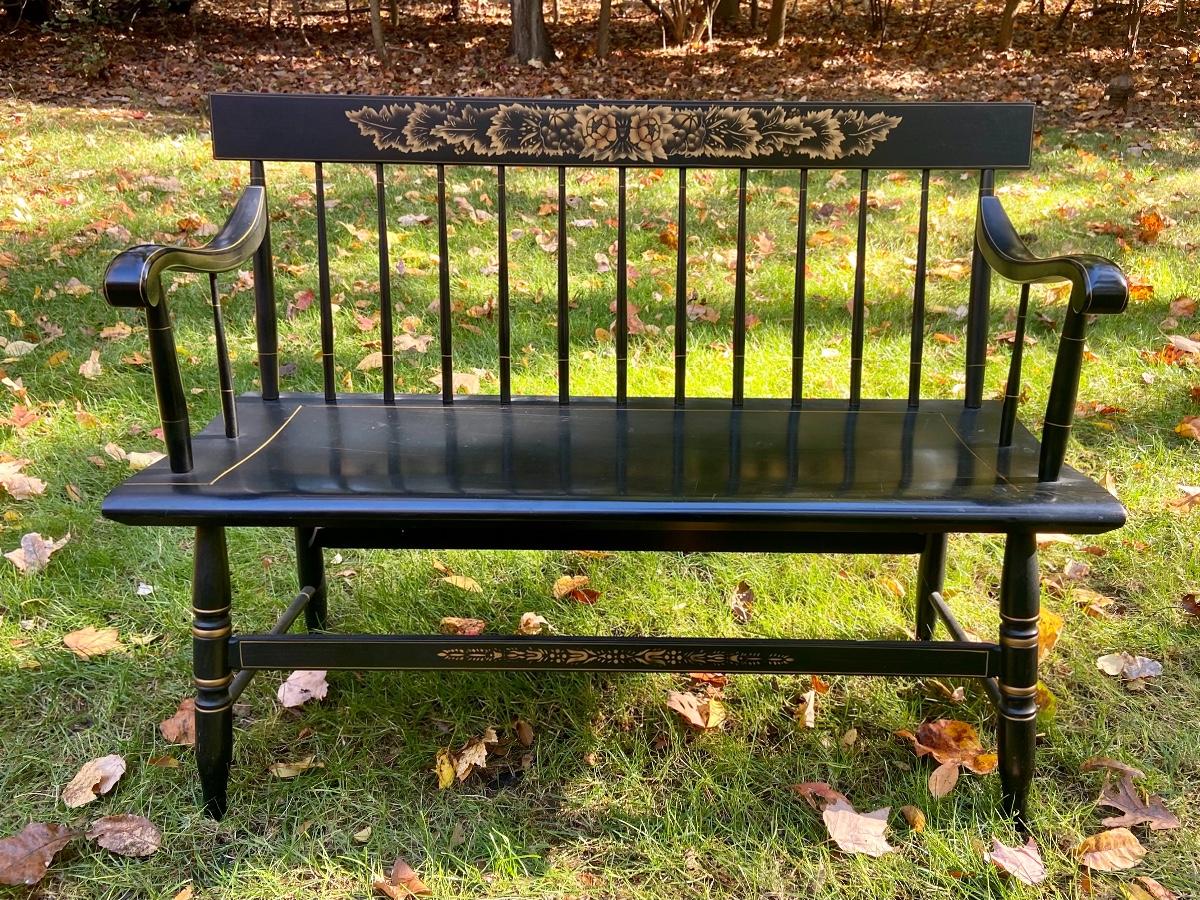 Sturdy, black w/ gold accents, marked on back as seen in pictures. 45"L x 16.5"W x 33"H. Please see all pictures as they are the best representation of the items. The pictures show condition, measurements if taken, and what is included in the lot. Due to the large amount that we photograph and the time frame, we are not always able to take measurements. All items unless noted, are pre-owned and have been used. If you purchased furniture, you must bring help. We do not allow one person to carry large furniture out on their own. Bring help, tools and a truck for the safety of our client’s homes, and your personal safety. Company policy. Thank you.
