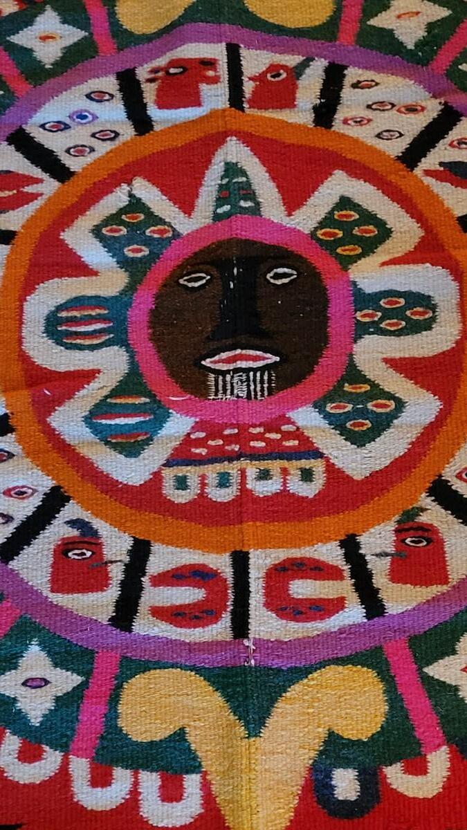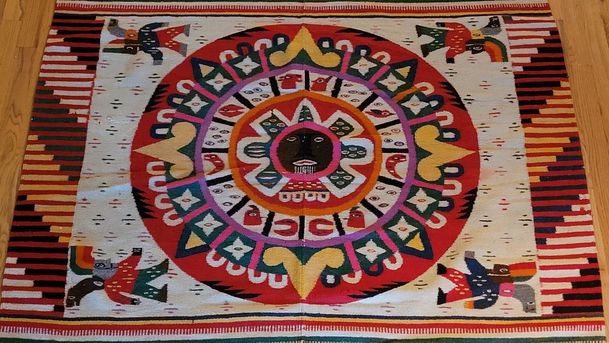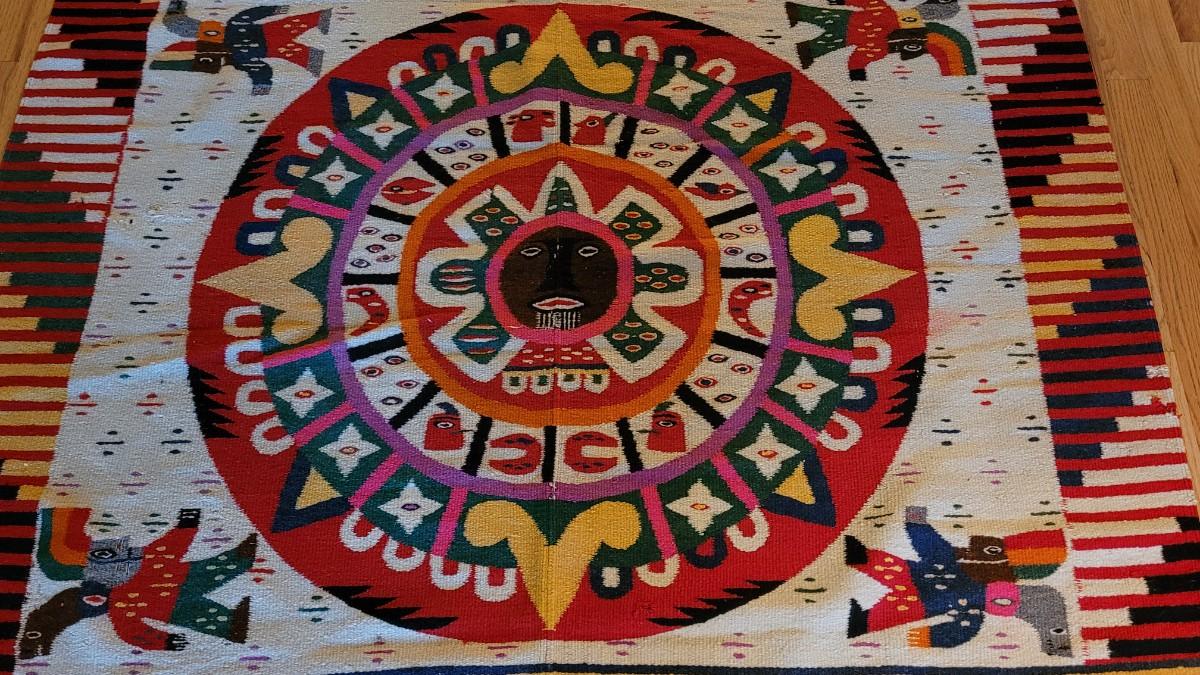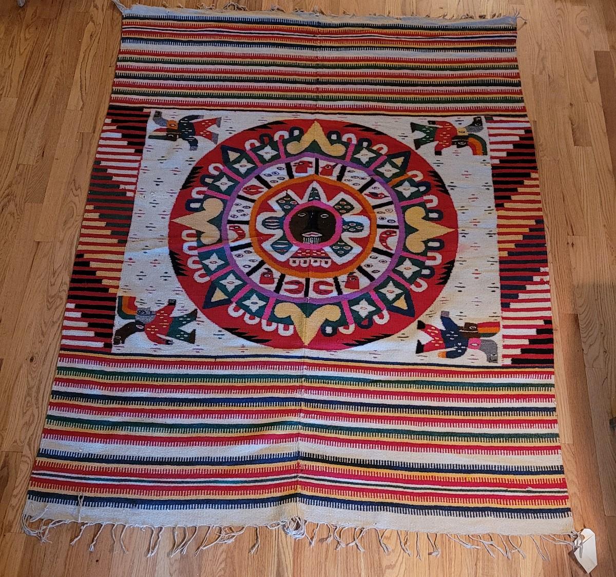 Lot 194: Vintage Mexican Rug/Blanket Depicting Aztec Sun