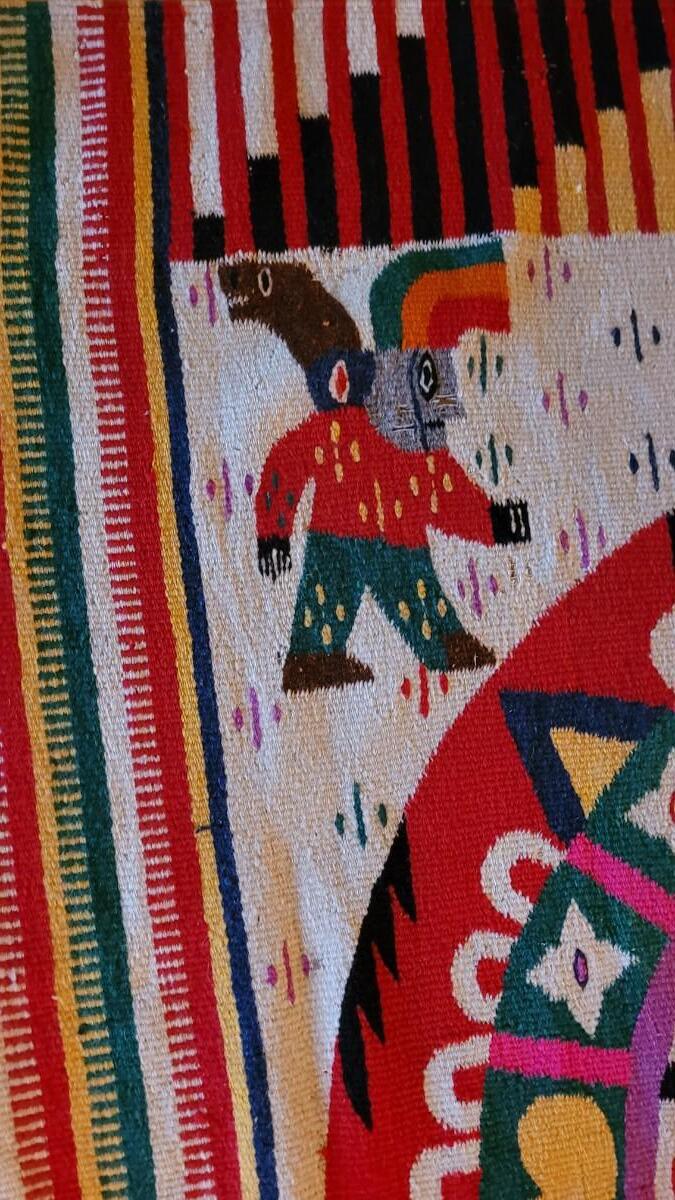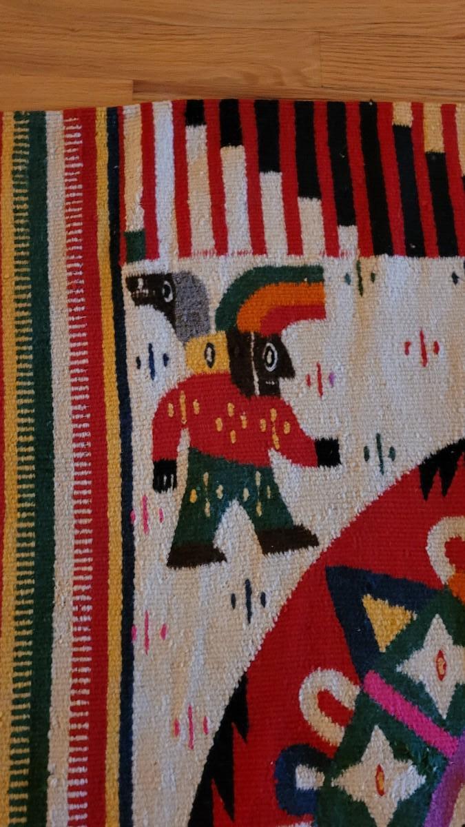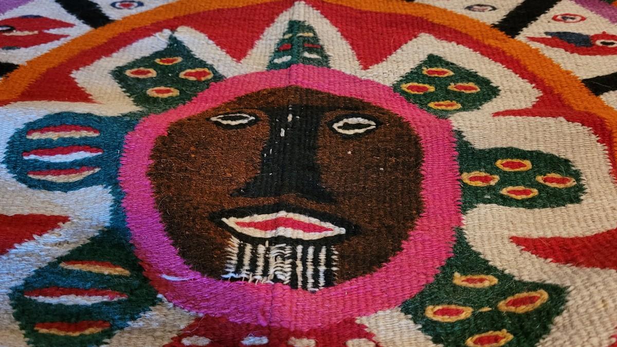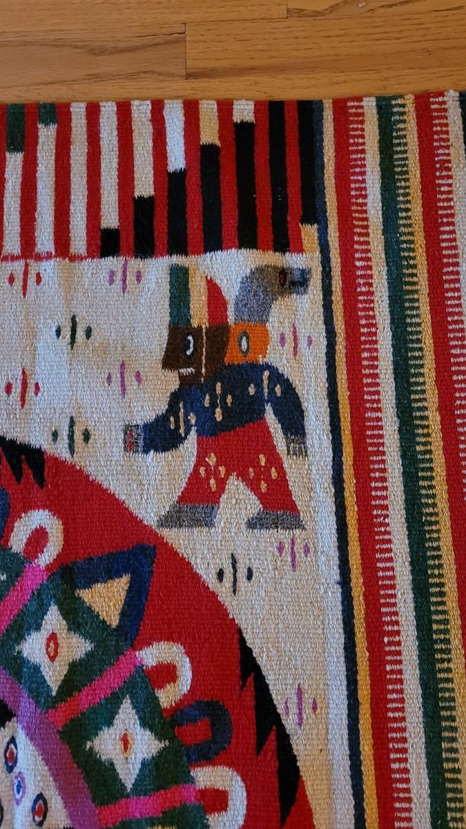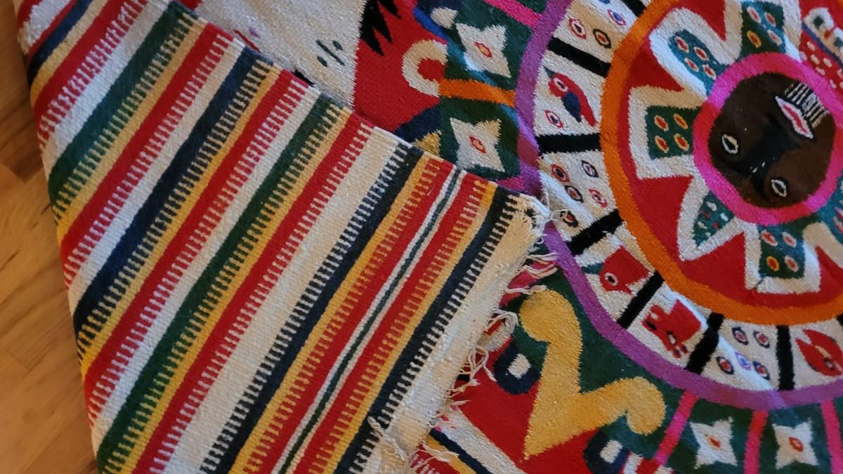 Lot 194: Vintage Mexican Rug/Blanket Depicting Aztec Sun