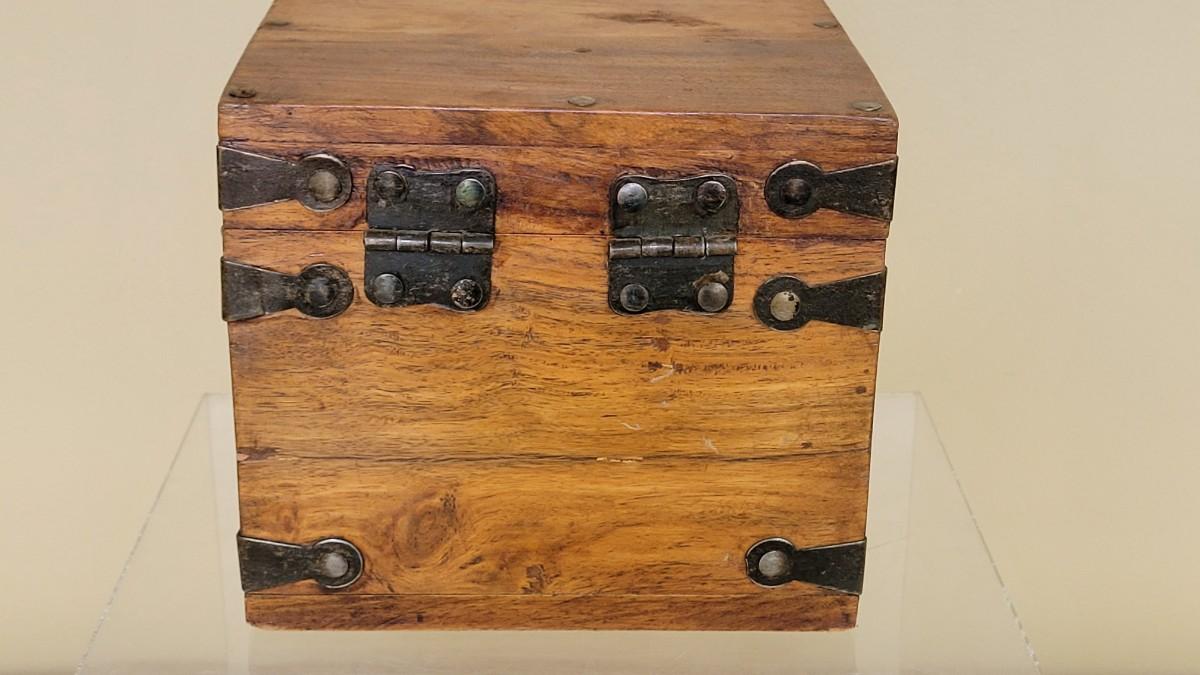 Lot 194: Antique Wood Box with Black Metal Hardware