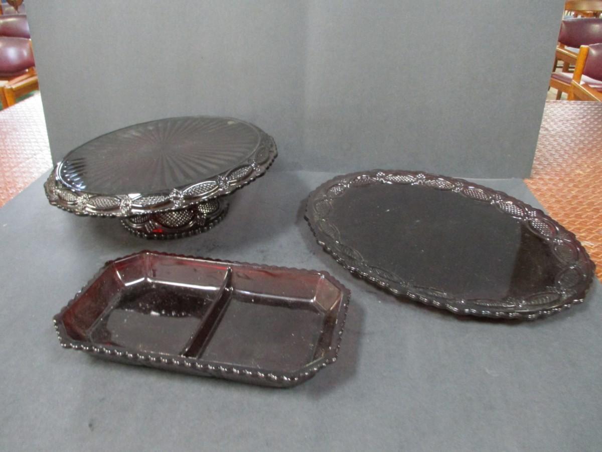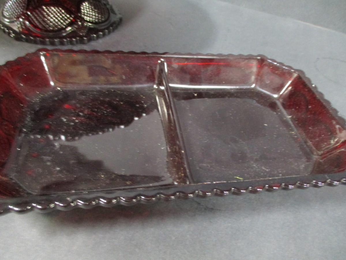 Lot 194 - Cape Cod Ruby Red Avon Cake Plate & Relish Divider & Platter