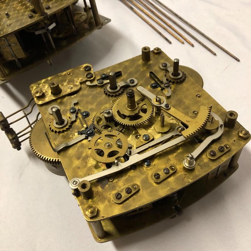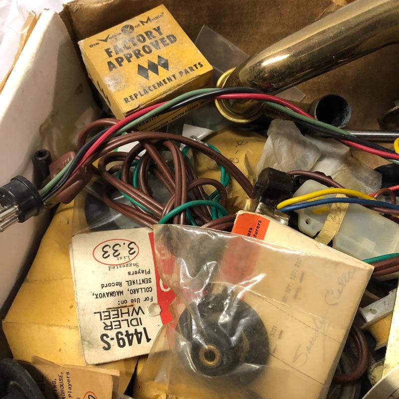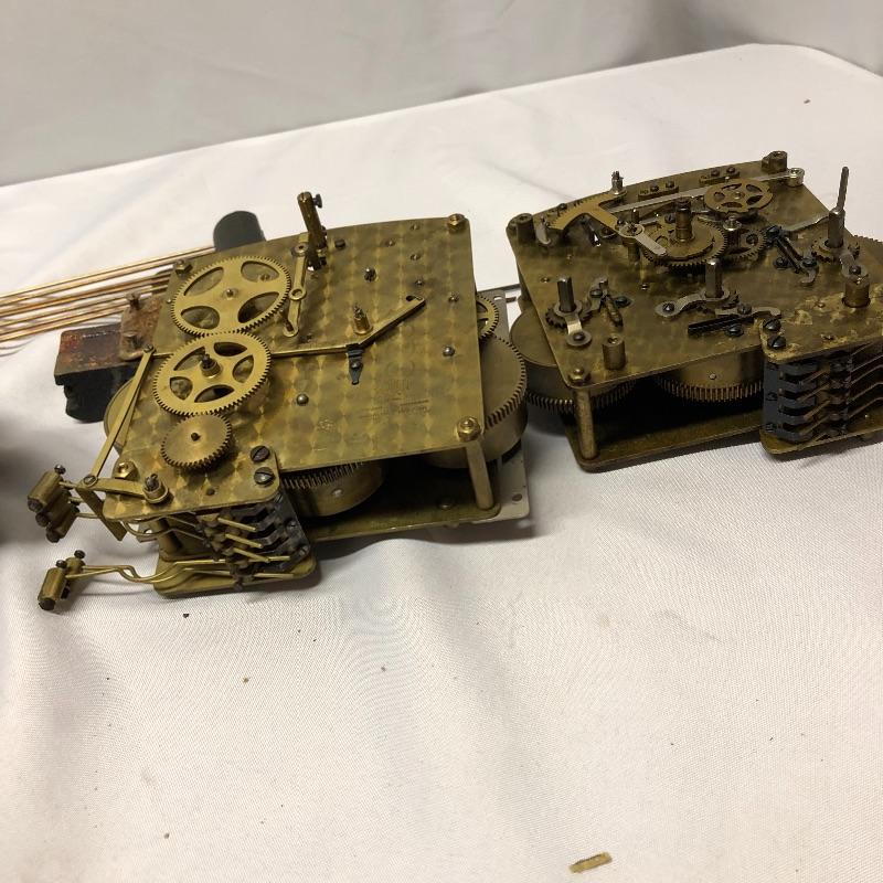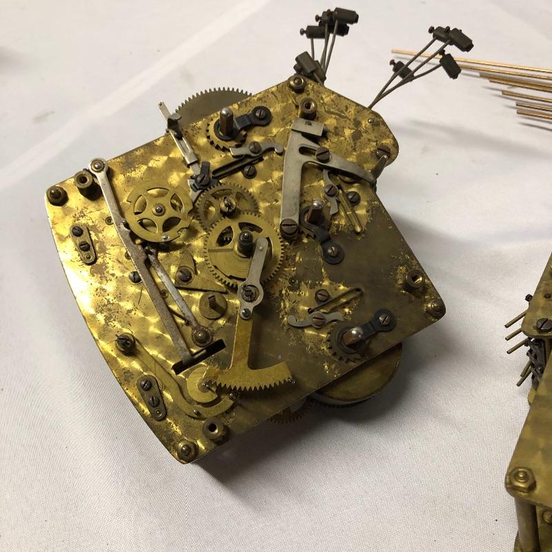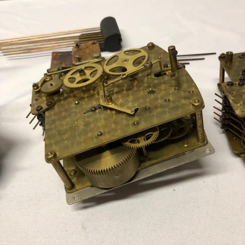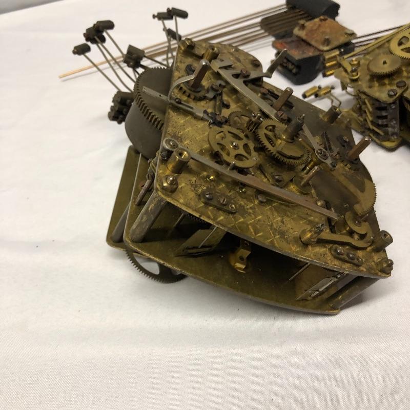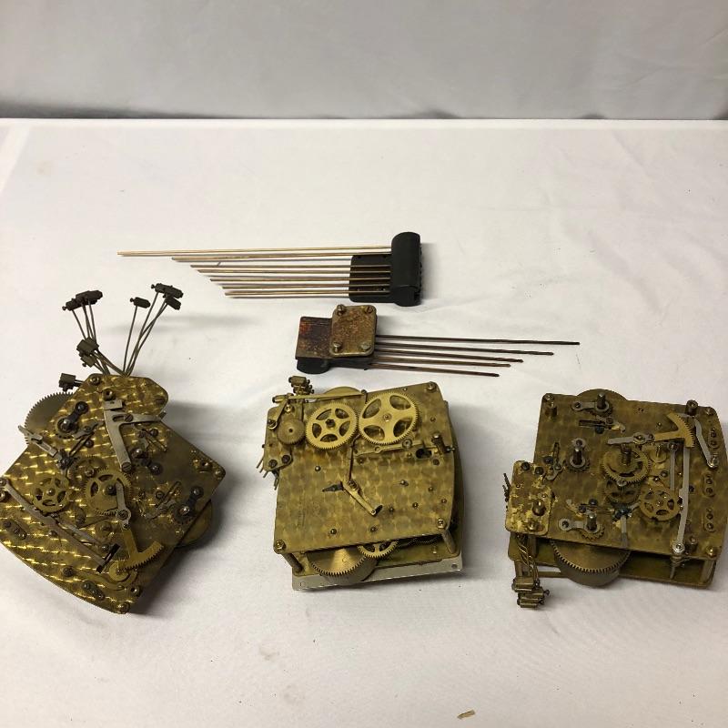 This lot include three internal clock mechanisms and other clock parts. It also likely includes some radio/turntable parts.