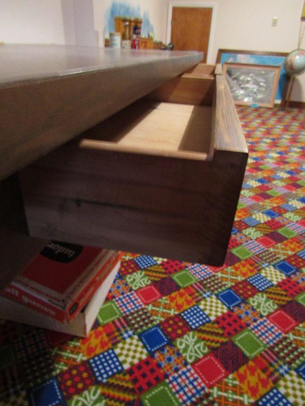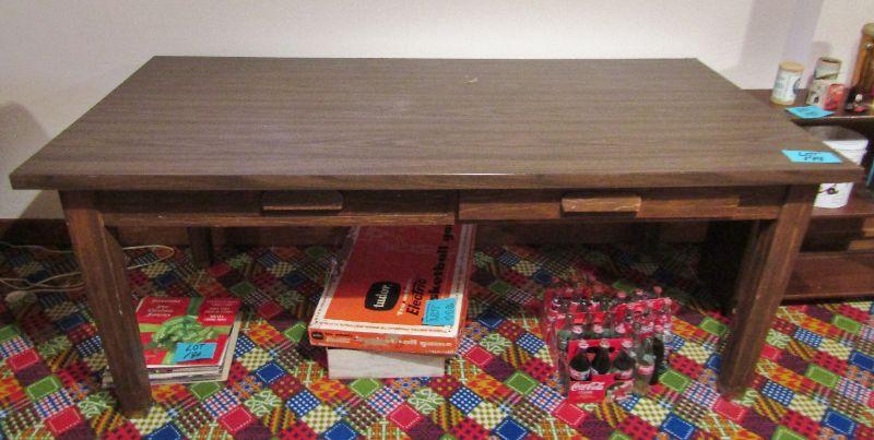 LARGE WOODEN COFFEE TABLE WITH 2 DRAWERS (ITEMS UNDERNEATH ARE NOT INCLUDED)