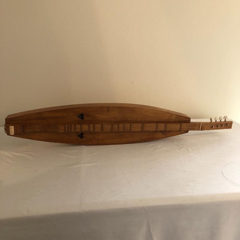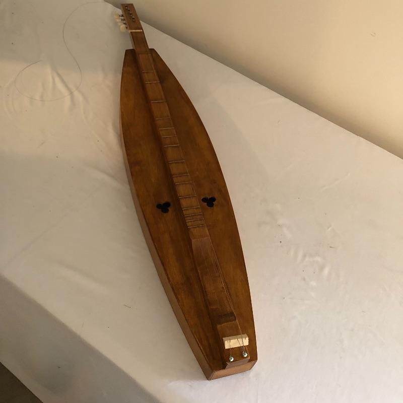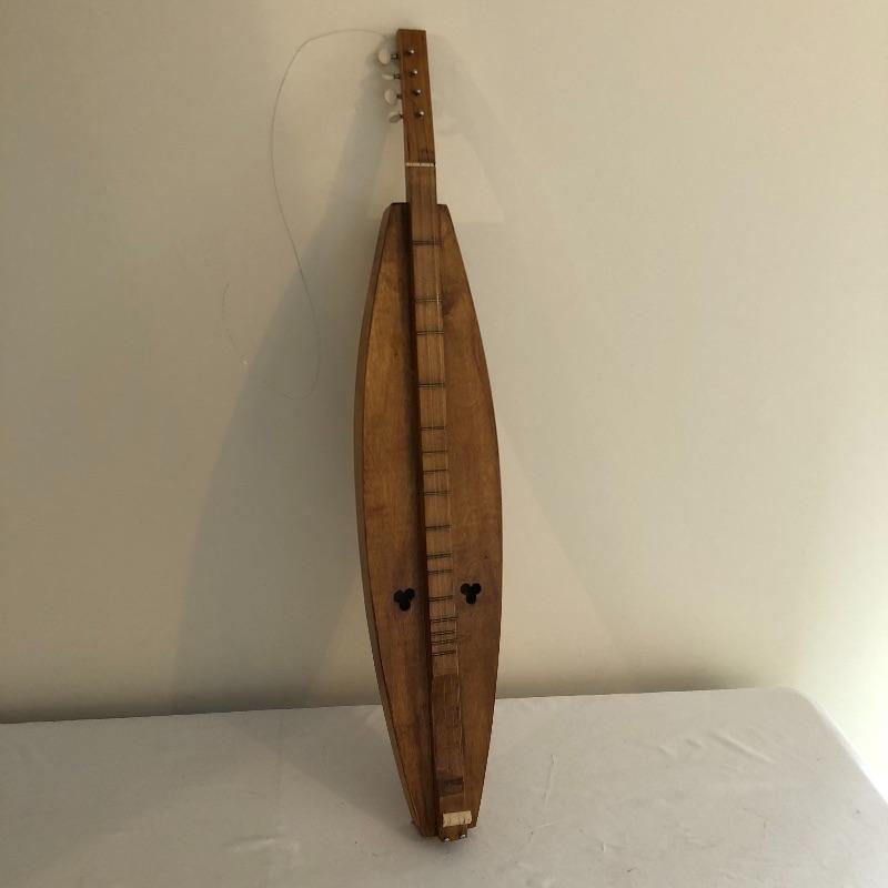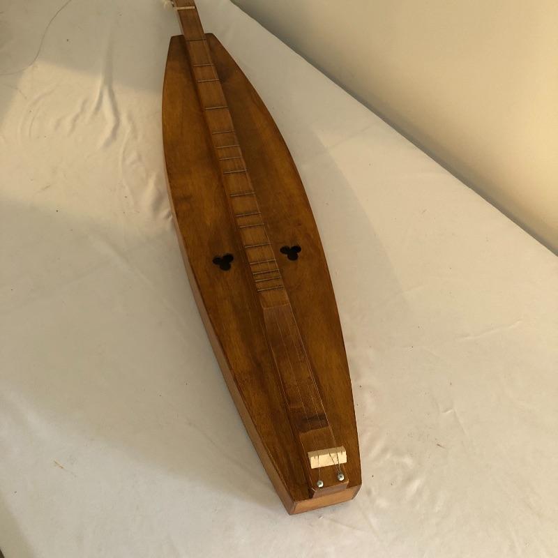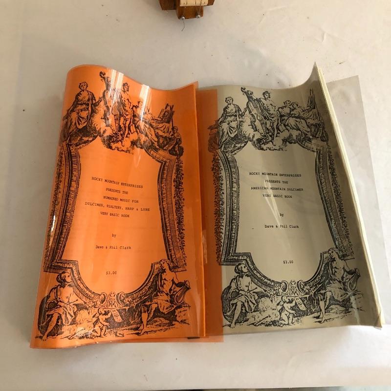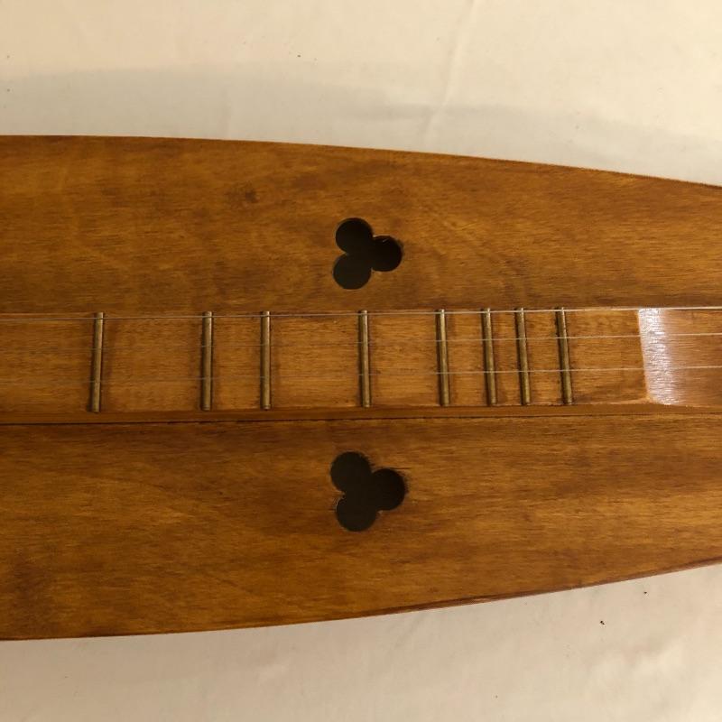 Show your musical talent with this dulcimer. Lot includes dulcimer and two dulcimer music books. Dulcimer has one broken string but in otherwise excellent shape. No markings were found on dulcimer.