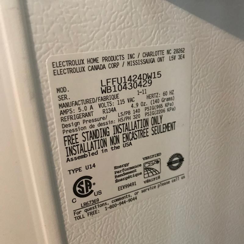 Frigidaire freezer. Appears to be in good working condition. Approx. 31” deep x 28” wide x 60” tall. No shipping. Local pickup only.