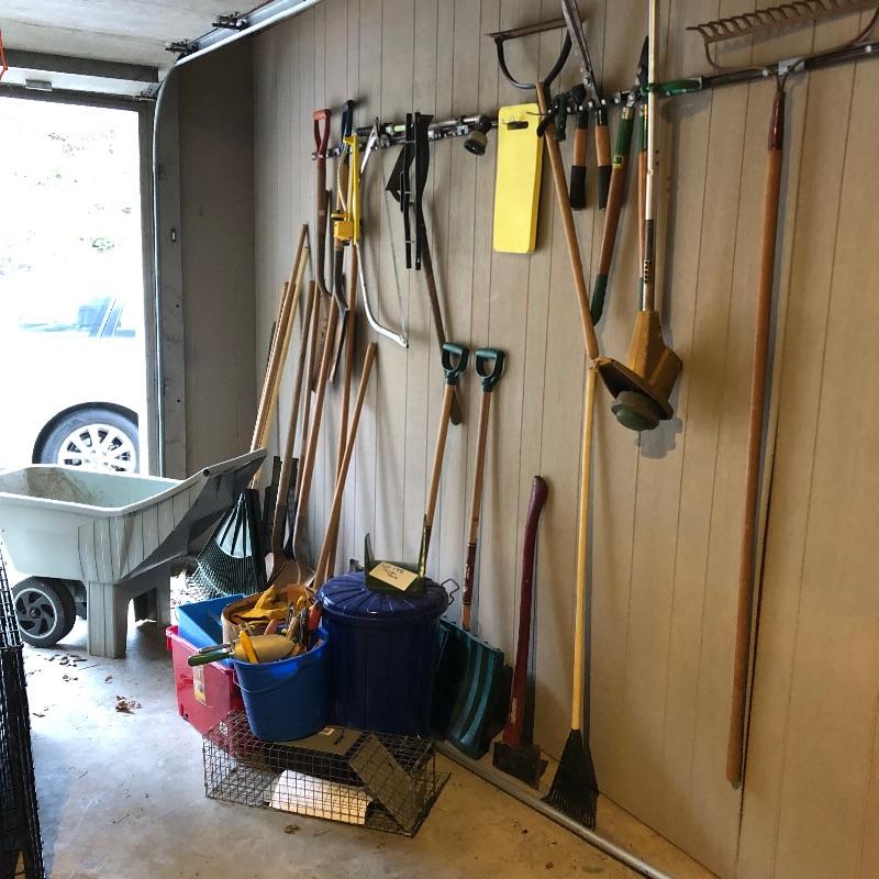 Just about everything you could possibly need for yard work is here in this lot. The weed-eater appears to be in working order. Also included is an Ames easy roller wheelbarrow, a couple of snow shovels, rakes, shovels, pruners, a post hole digger, storage hangars, storage containers, tarps, animal trap, stakes, lots of hand tools, gloves, ax, a pole saw and much, much more, see images.