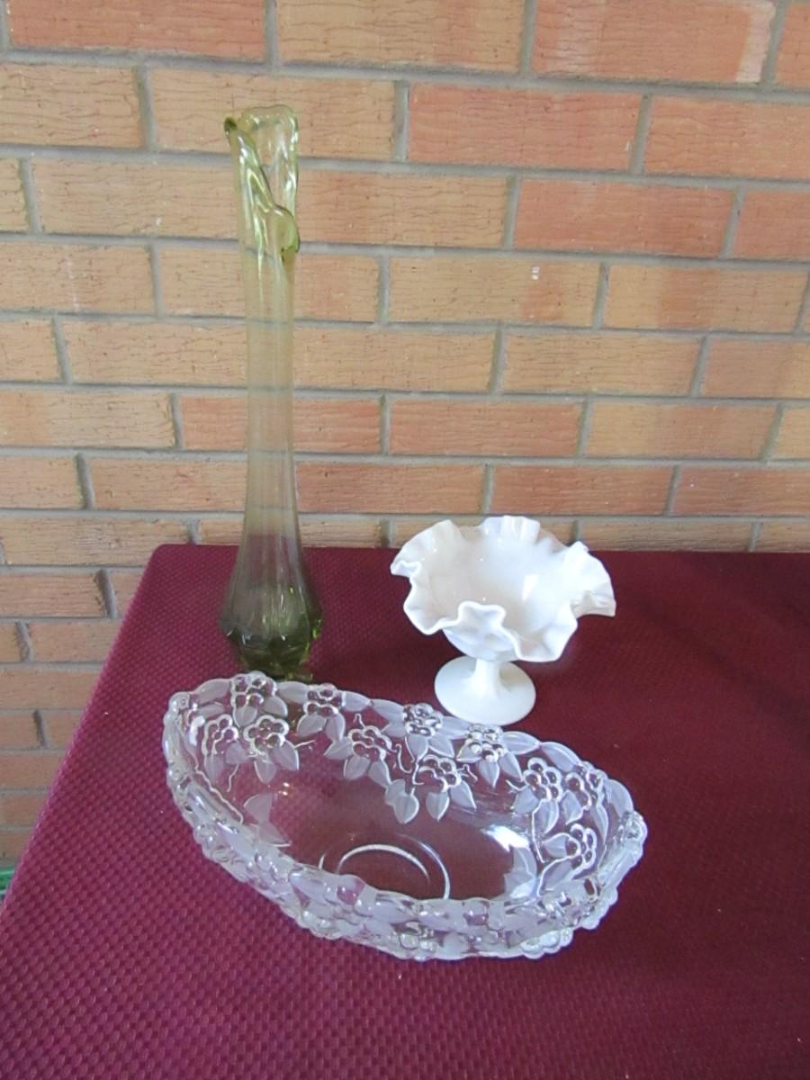 FENTON MILK GLASS RUFFLED DISH 7"H X 5"W