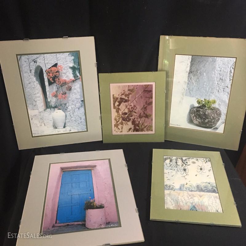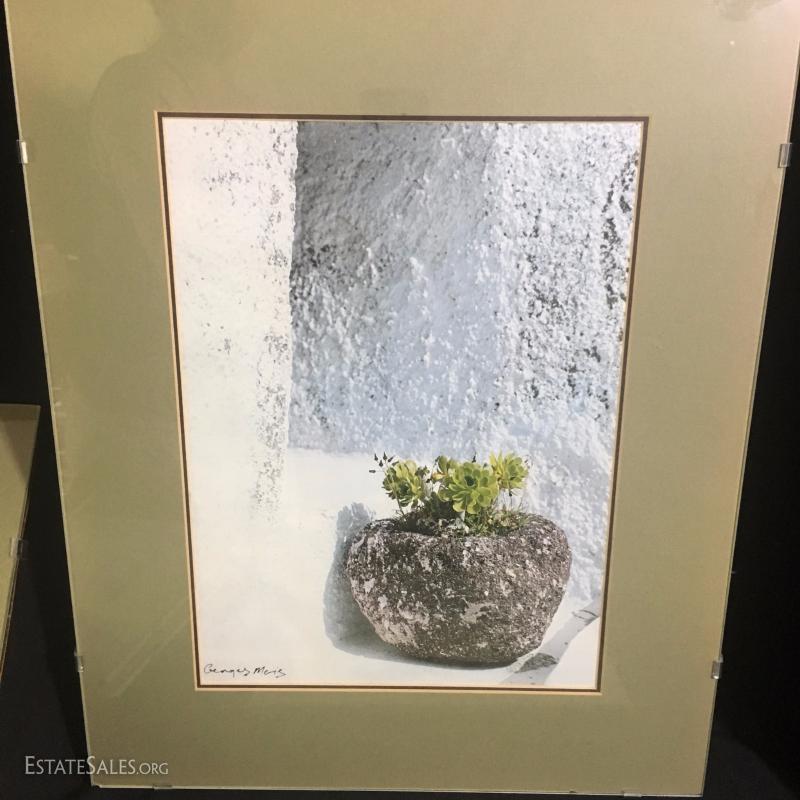 Several framed photos by Gorge Meis. Some unsigned. Three large 20"l x 16"w. Smaller two are 16.5"l x 12"w and 14.5"l x 12.5"w. All matching frames.