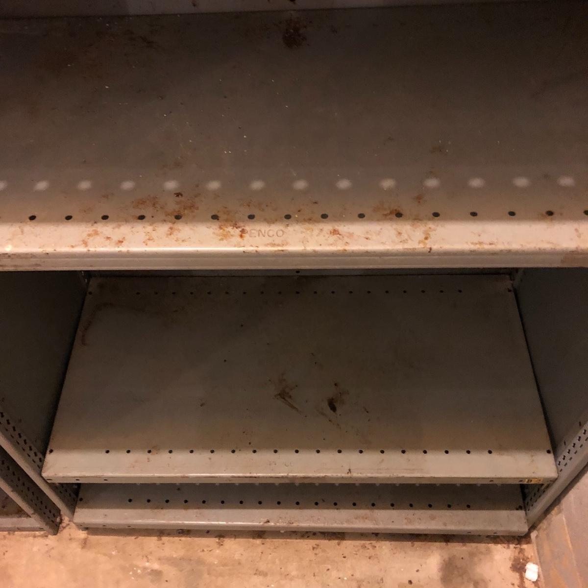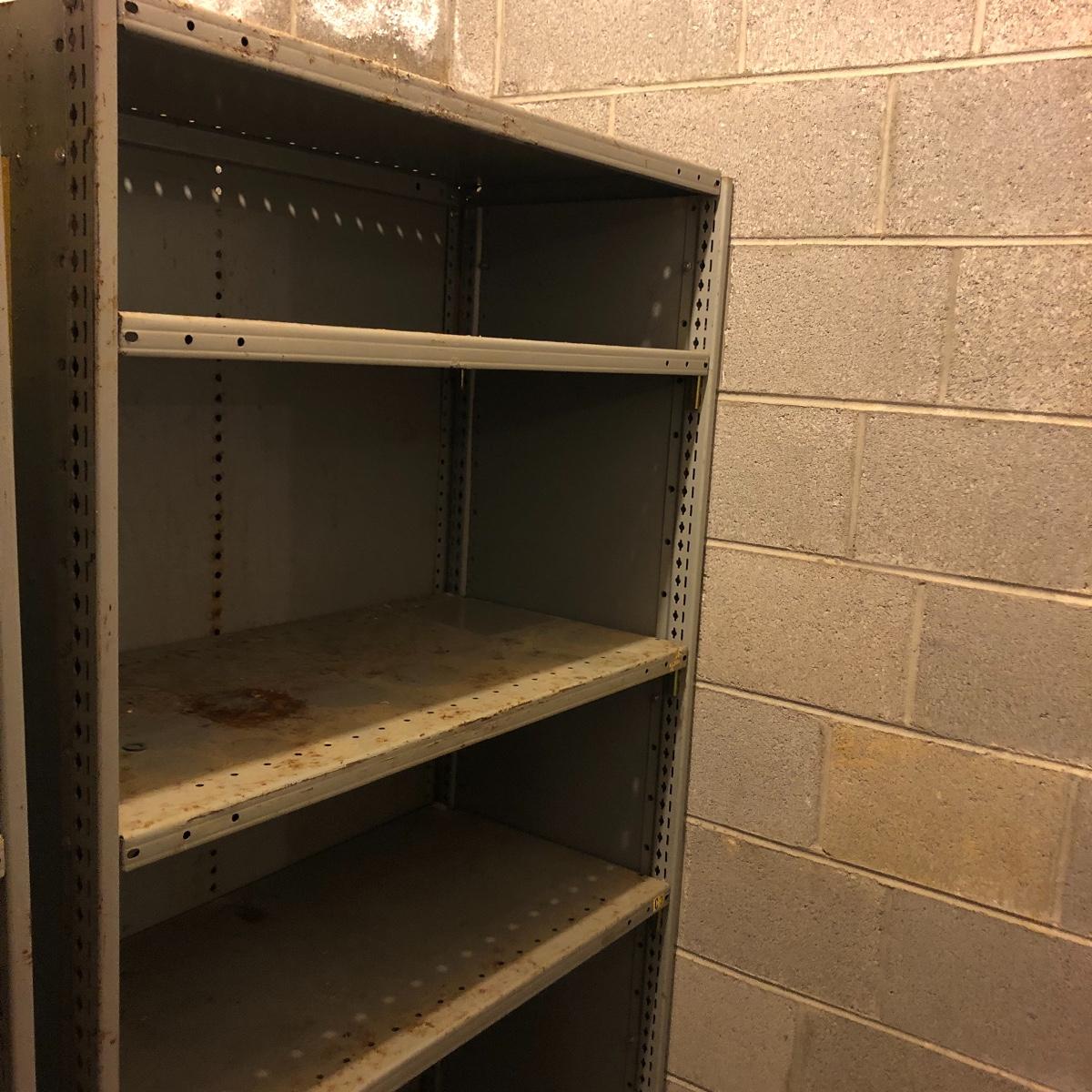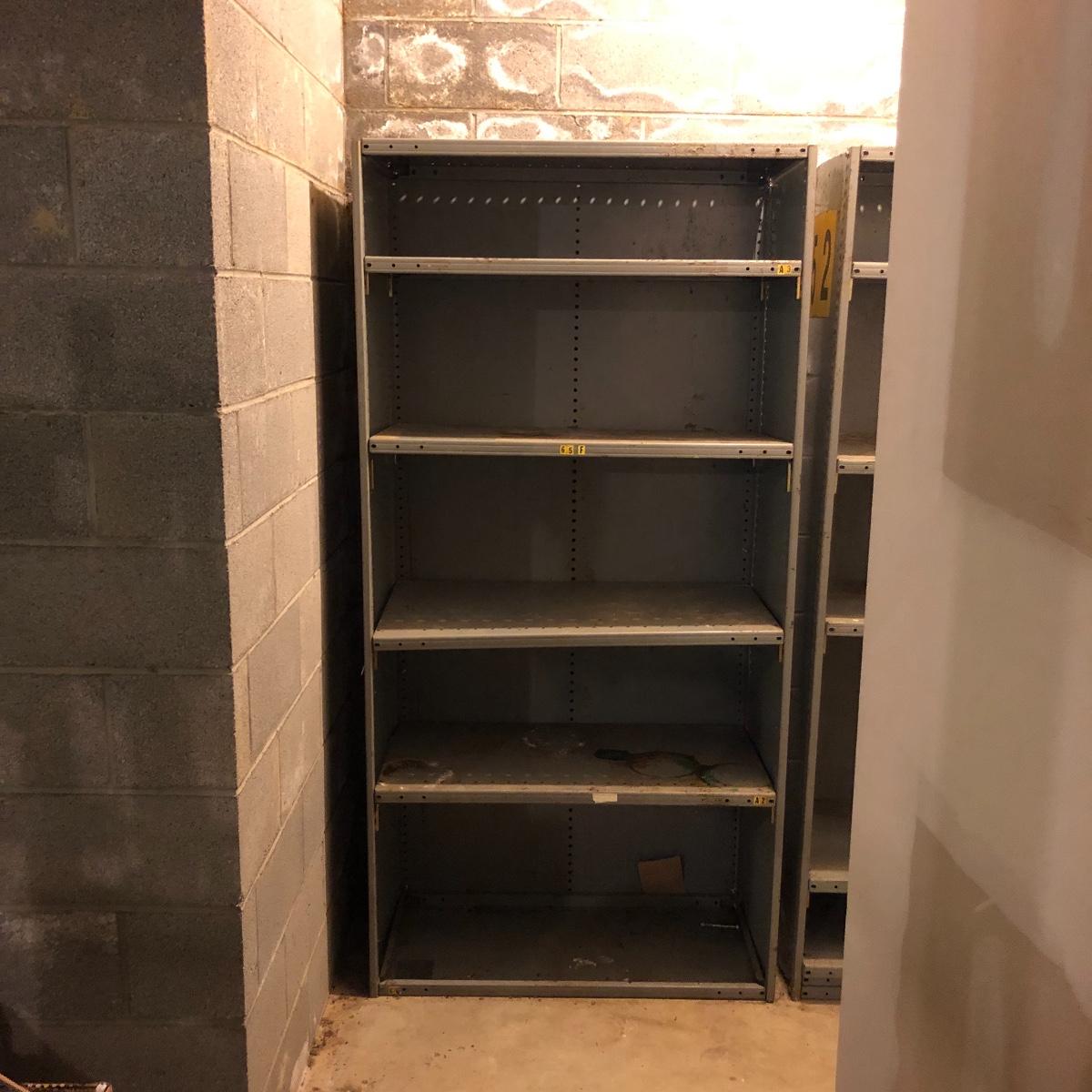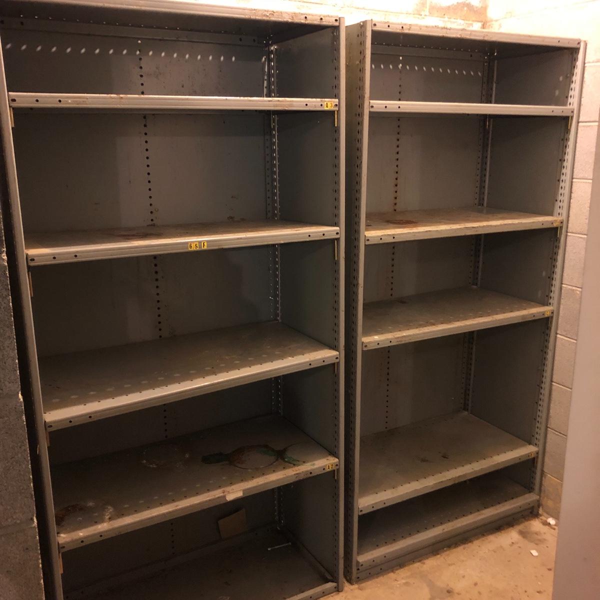 It’s very rare that we come across metal shelves with backs, but these two Penco units both have them. Each shelf unit has 4 adjustable shelves currently in place as pictured and there are two extra shelves and a bunch of shelf pins included also. These heavy duty adjustable shelves measure 47” wide x 18” deep x 75” tall.