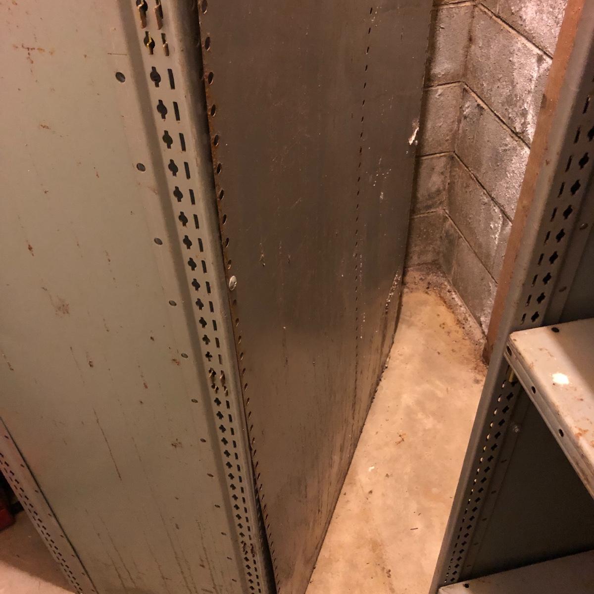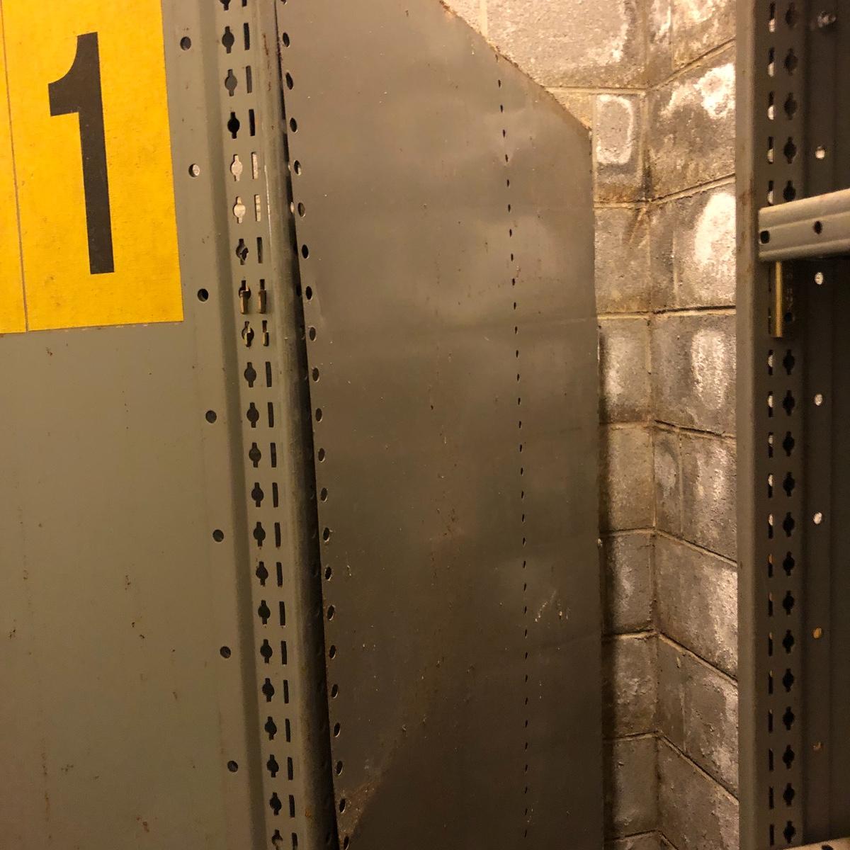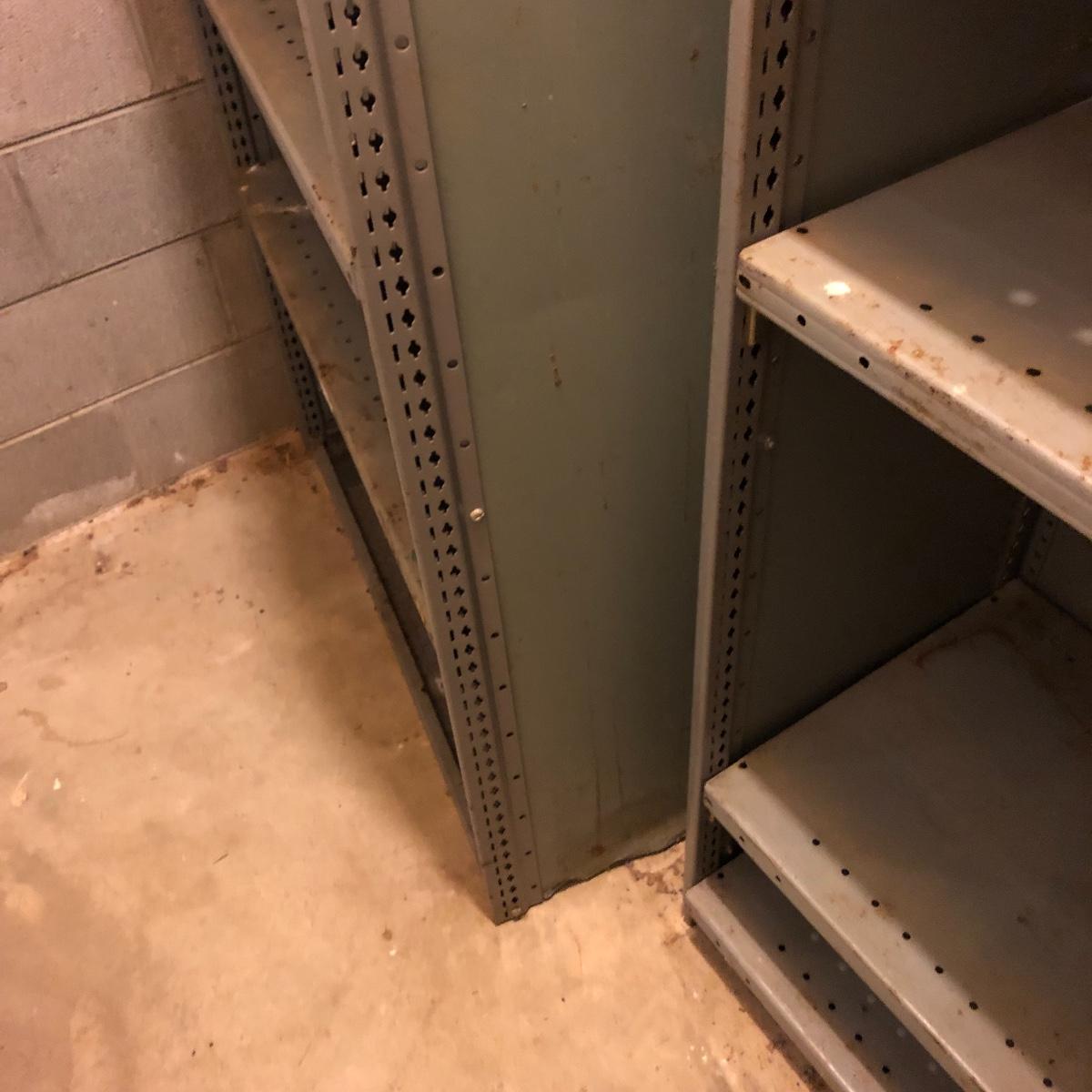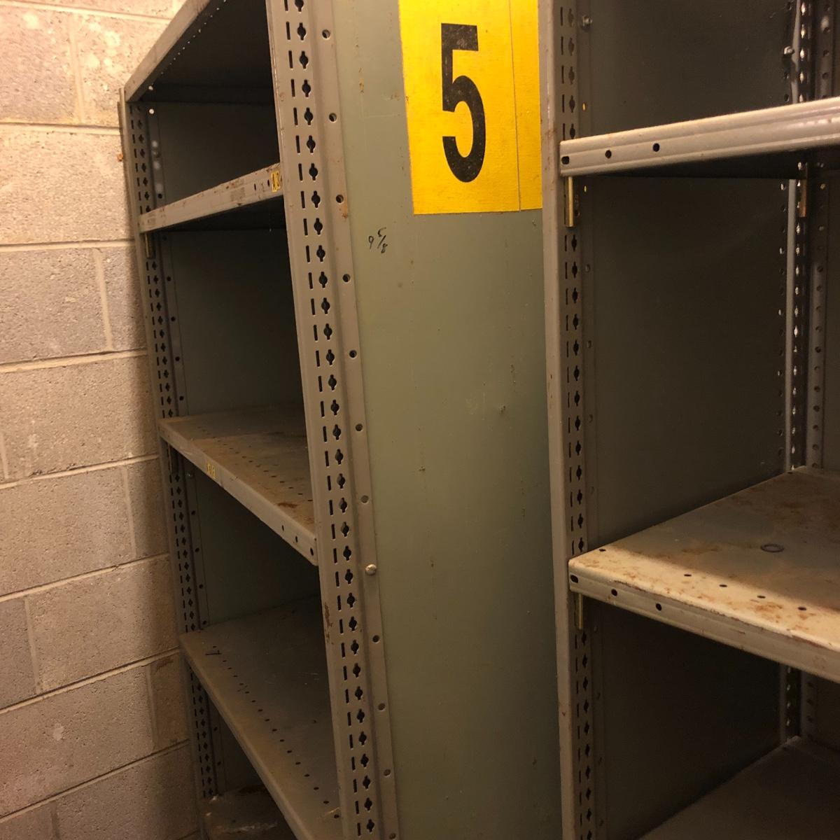 It’s very rare that we come across metal shelves with backs, but these two Penco units both have them. Each shelf unit has 4 adjustable shelves currently in place as pictured and there are two extra shelves and a bunch of shelf pins included also. These heavy duty adjustable shelves measure 47” wide x 18” deep x 75” tall.