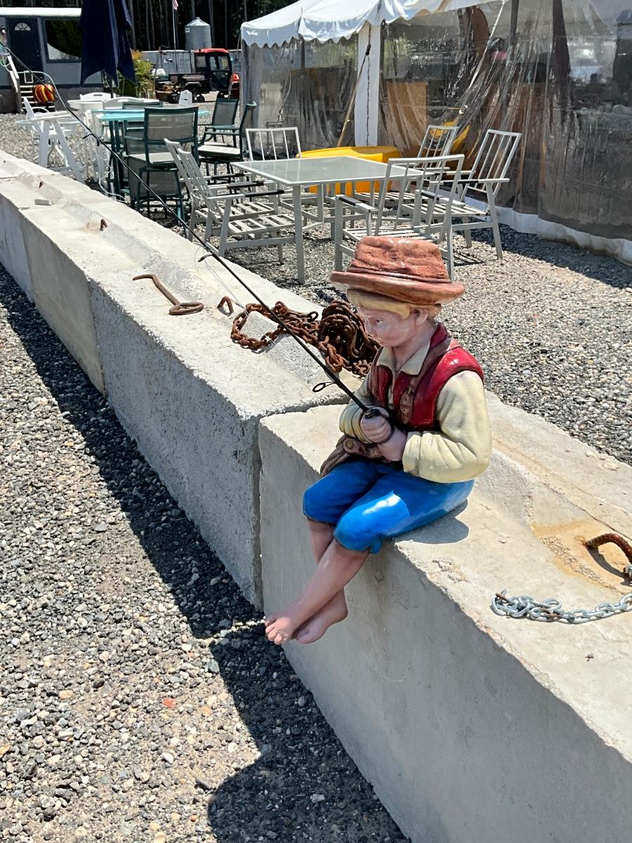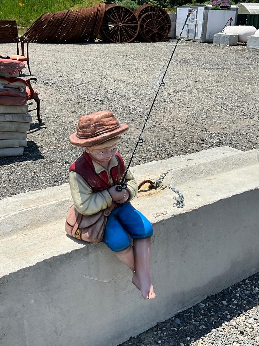 Sitting Clay Boy Fishing, measures 14” Wide x 16.5” Deep x 28” High