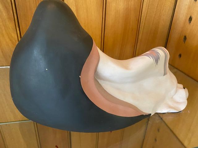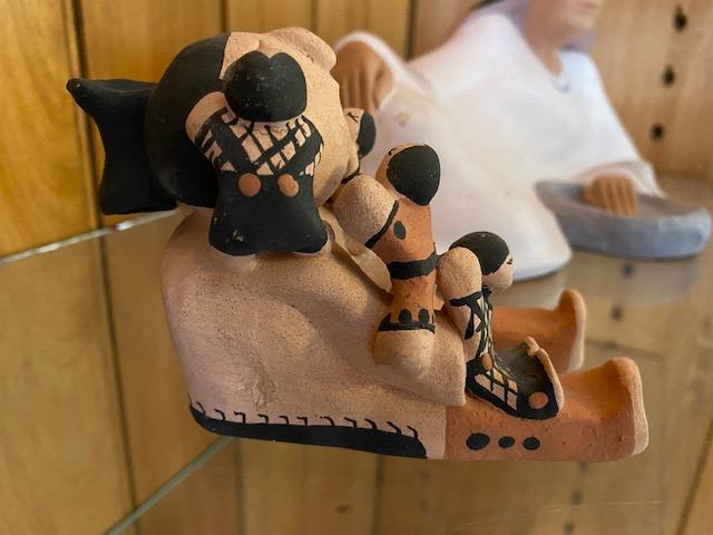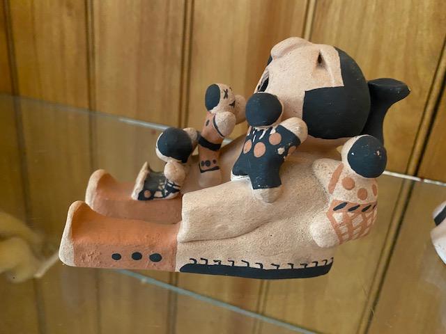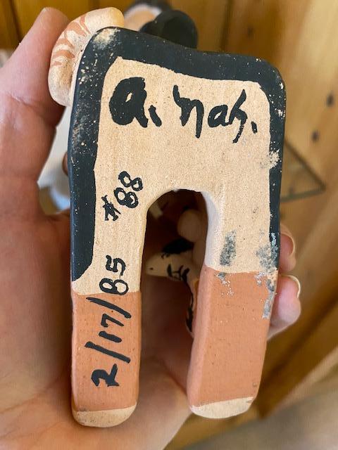 2 pottery statuettes - one made in 1985 by A Nah - not sure of maker on person lying down