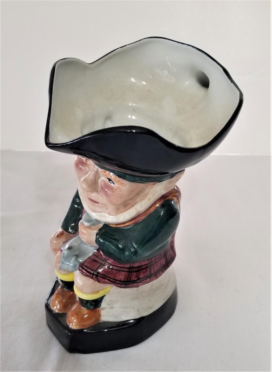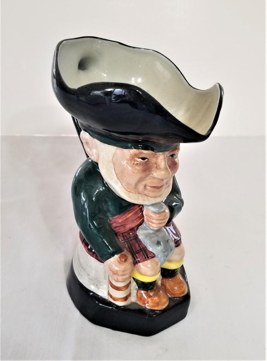 Classic English figural Staffordshire pitcher - the rat catcher - 9" tall - good condition. Appears to be leaning a bit to the left, but apparently made that way.