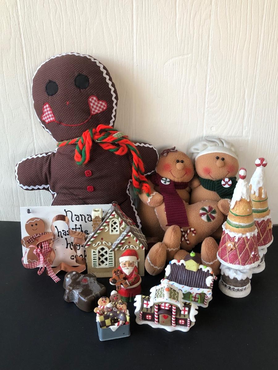 LOT 194G: Gingerbread Decor Collection - Stuffed Figures, House Ornaments, Trees & More