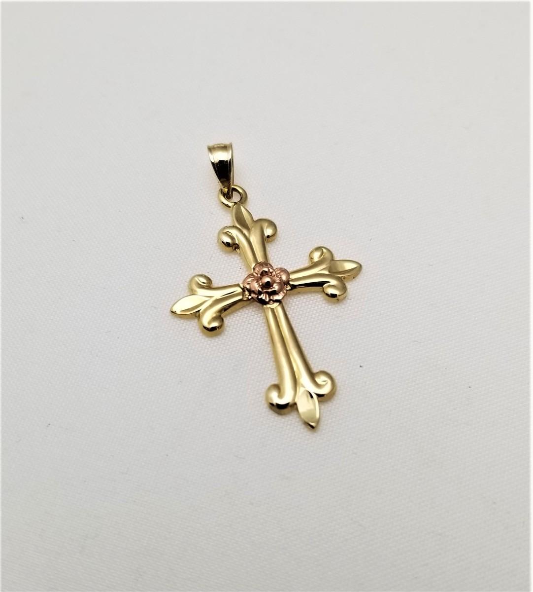 Lot #195 14kt Yellow & Rose Gold Cross Pendant