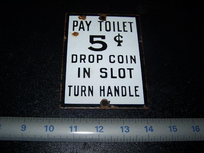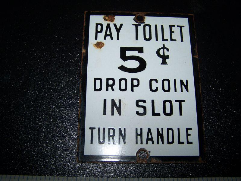 ANTIQUE ENAMEL PAY TO USE THE TOILET SIGN GOOD CONDITION