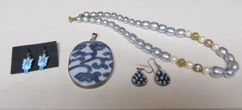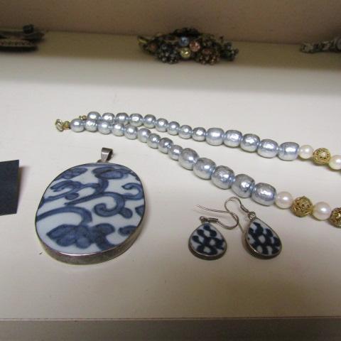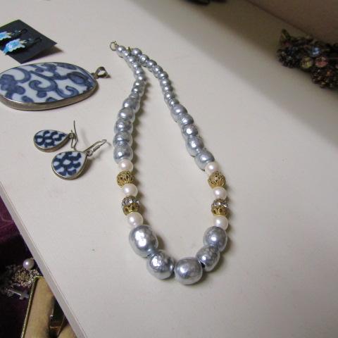 2 PIERCED EARRINGS AND FAUX PEARL NECKLACE