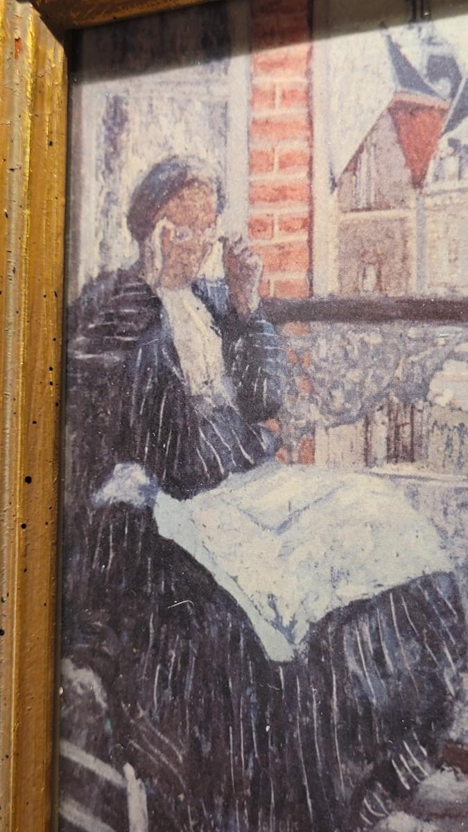 Lot 195: Vintage Framed Art Print of Woman Creating Needlepoint