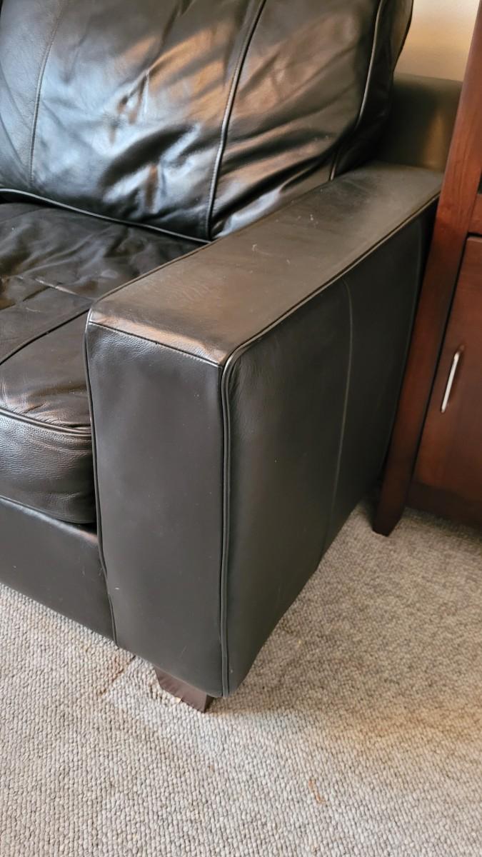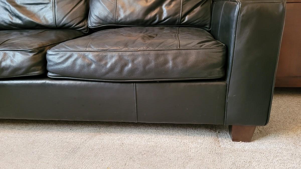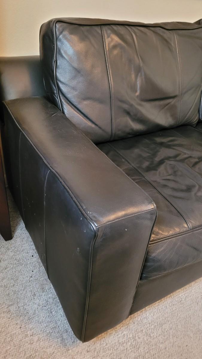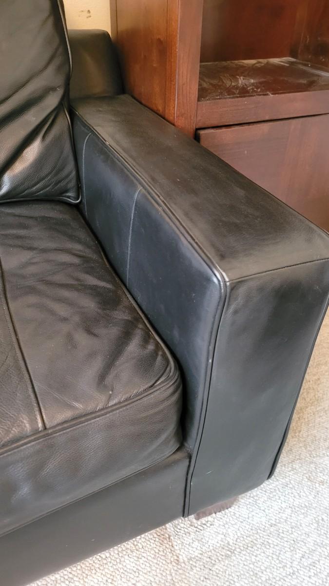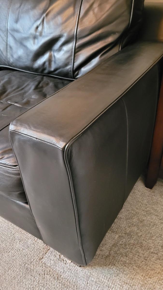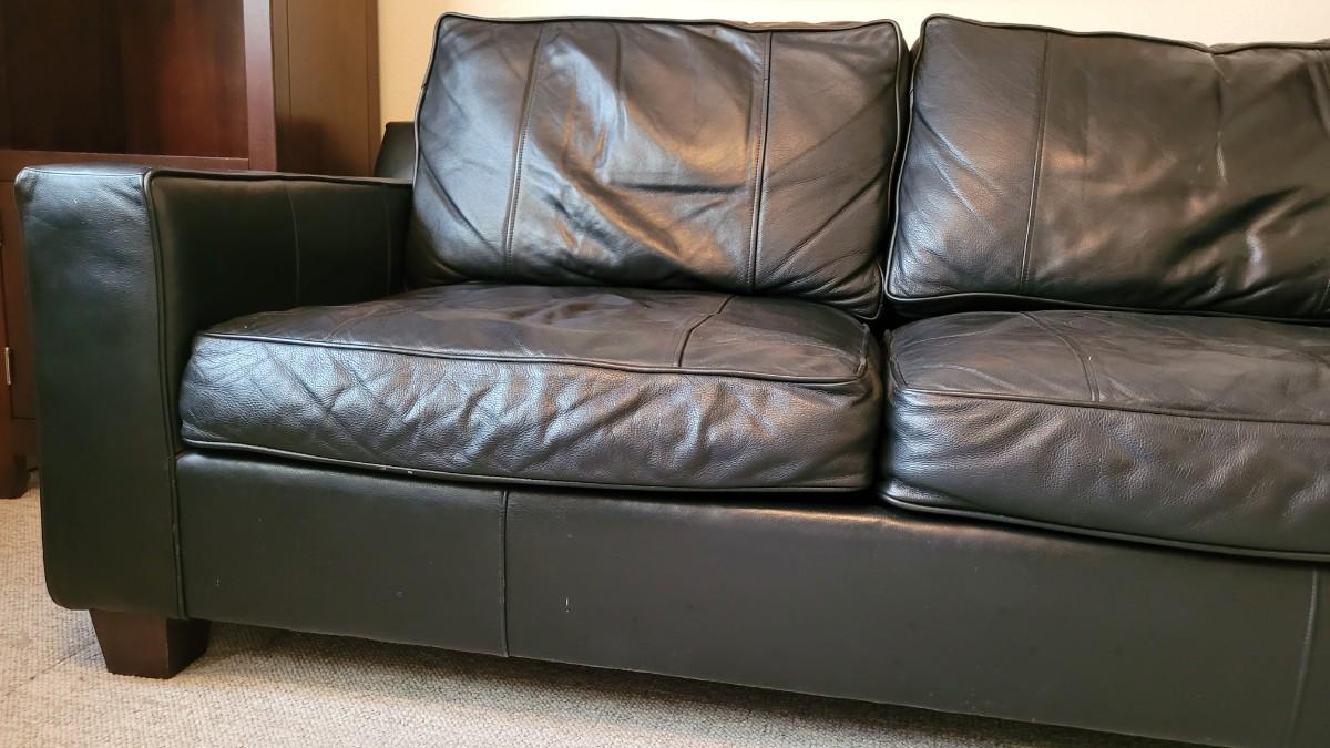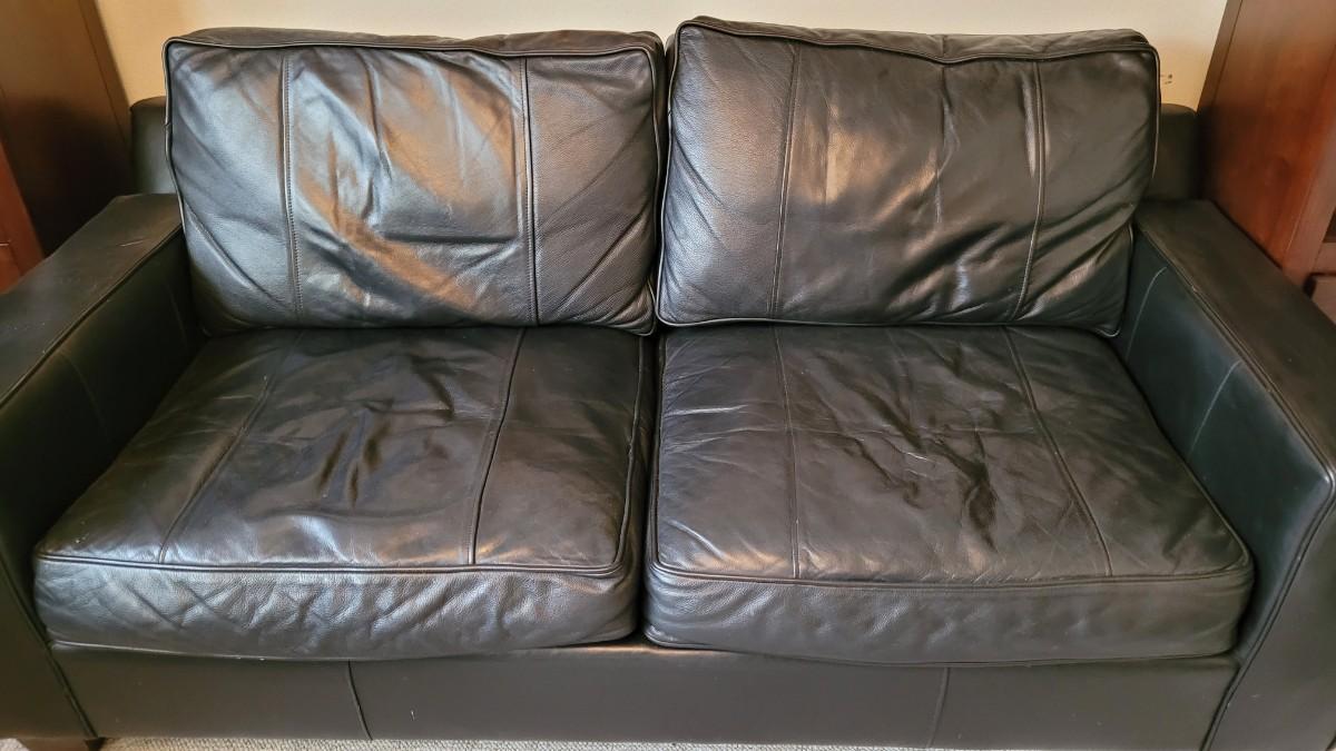 Lot 195: NORWALK FURNITURE Aniline Black Leather Down Filled Couch and 2 Matching Foot Stools