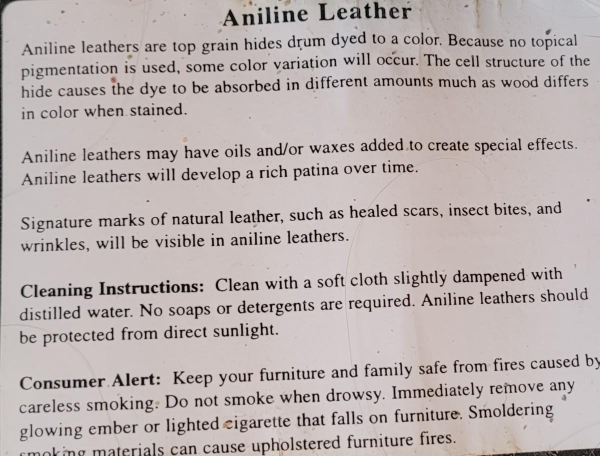 Aniline leather is a type of leather dyed exclusively with soluble dyes. The dye colours the leather without producing the uniform surface of a topcoat paint or insoluble pigmented sealant. The resulting product retains the hide's natural surface.