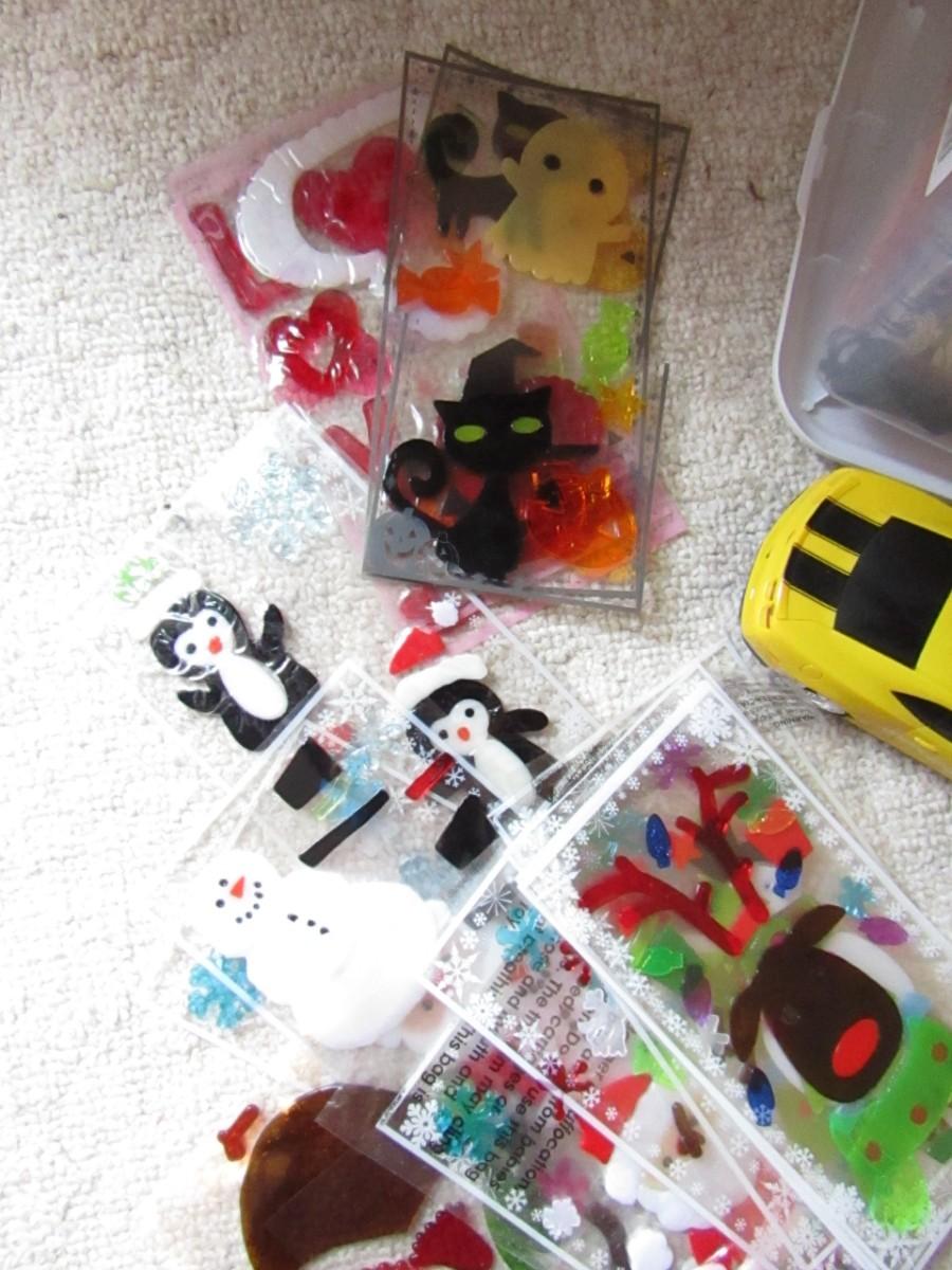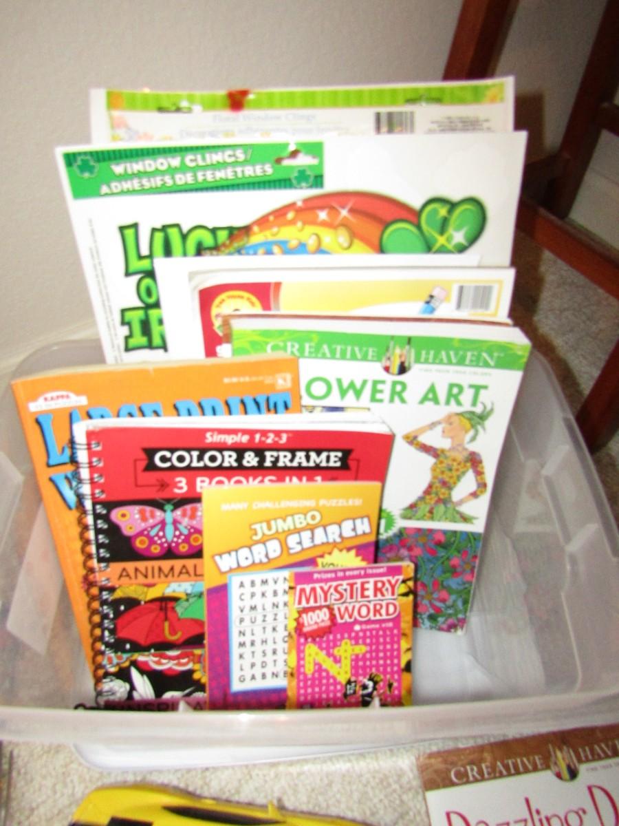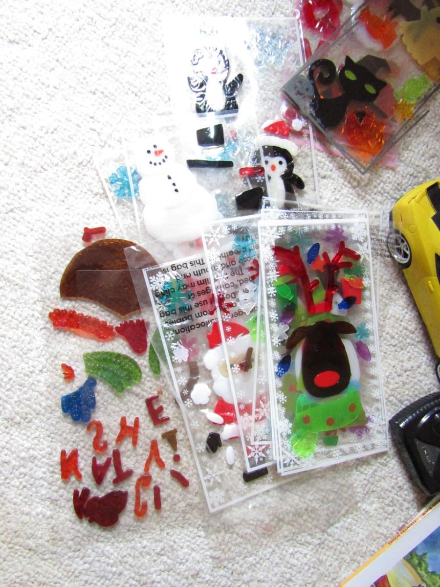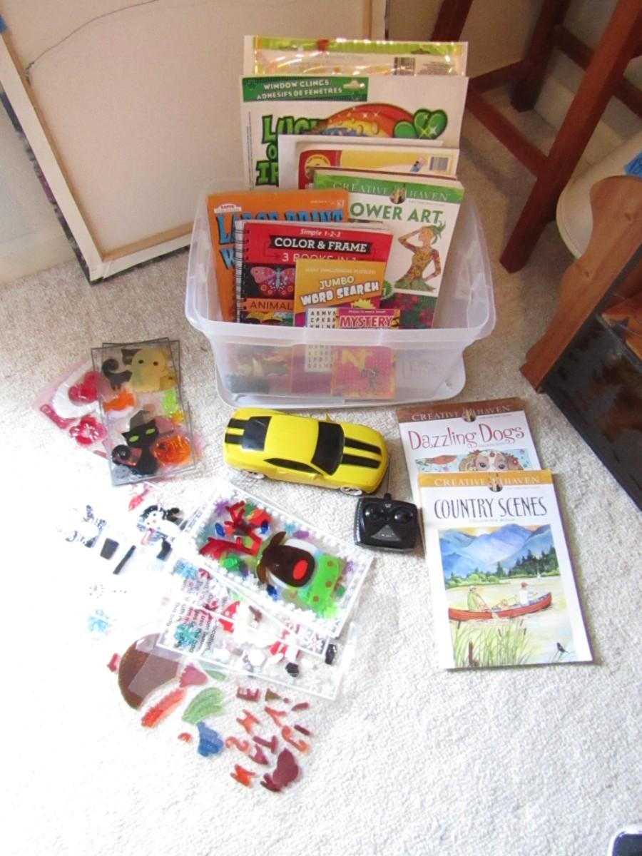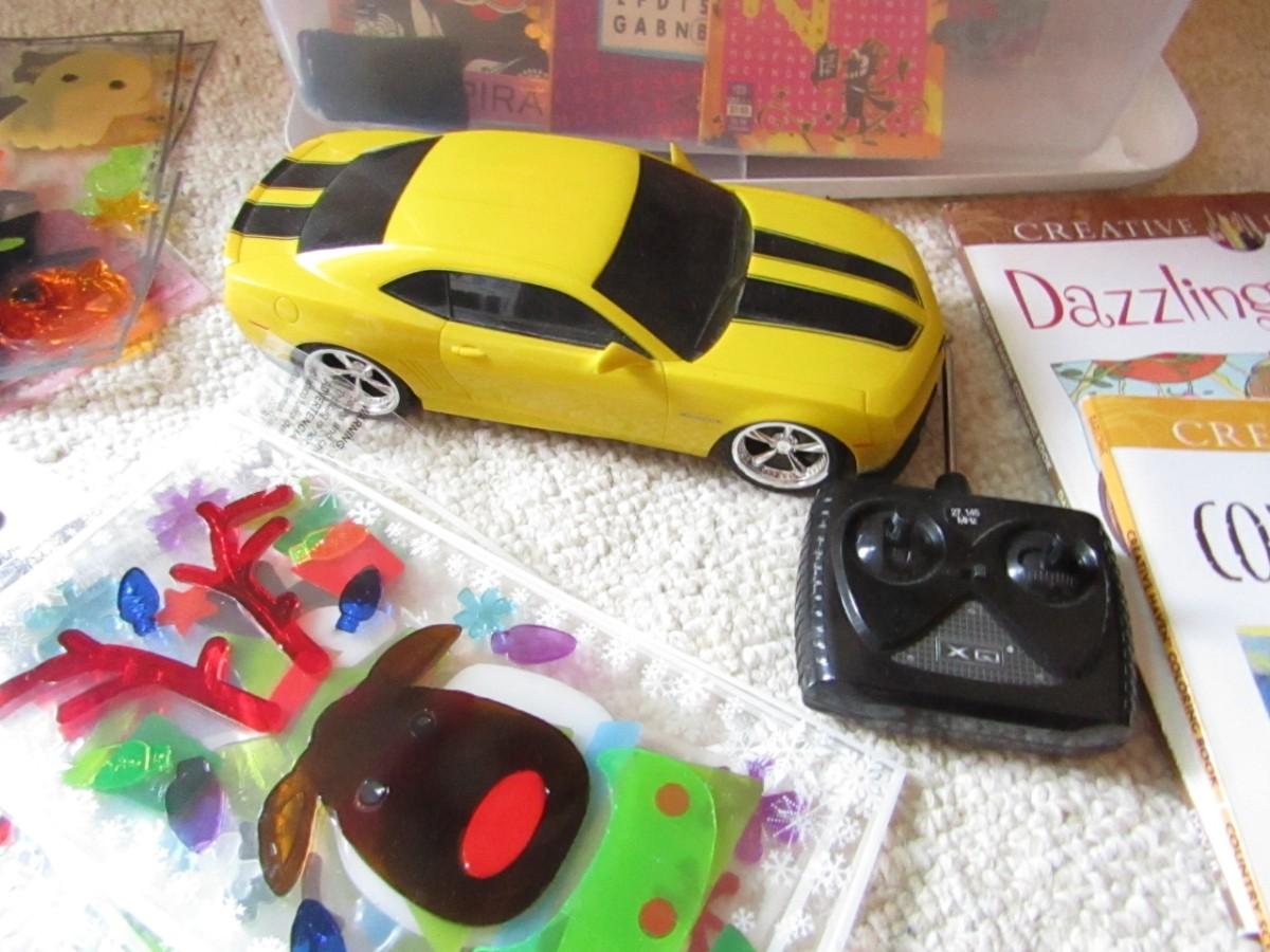 ADULT COLORING BOOKS, COLORED PENCILS AND PENS, REMOTE CONTROL CAR, GUMMIE-LIKE HOLIDAY DECORATIONS, WINDOW CLINGS AND MORE