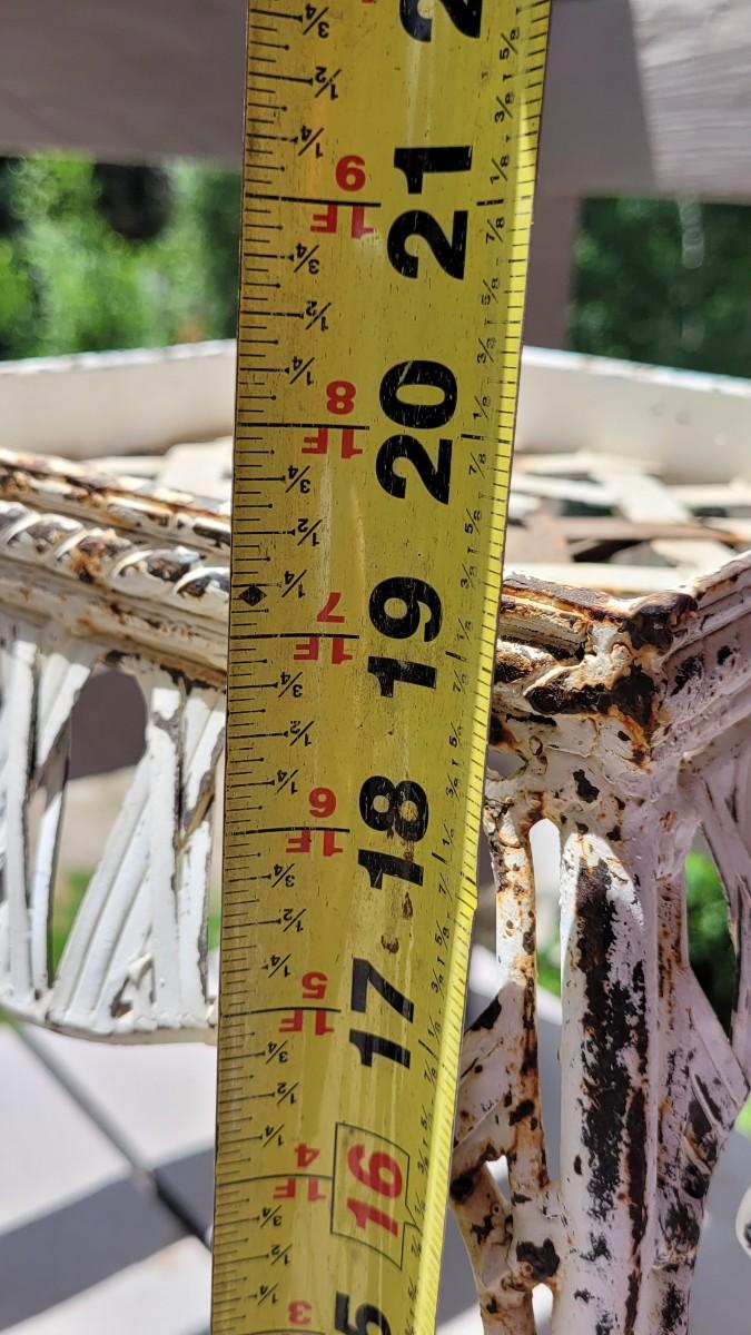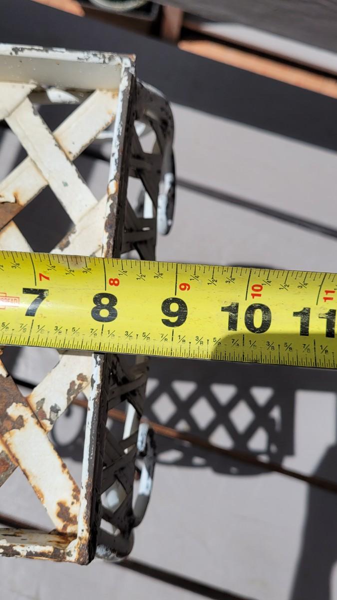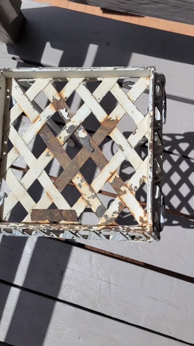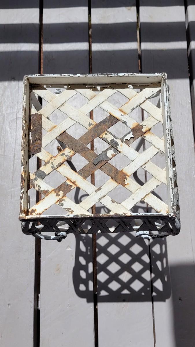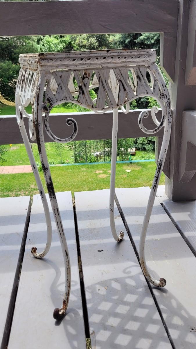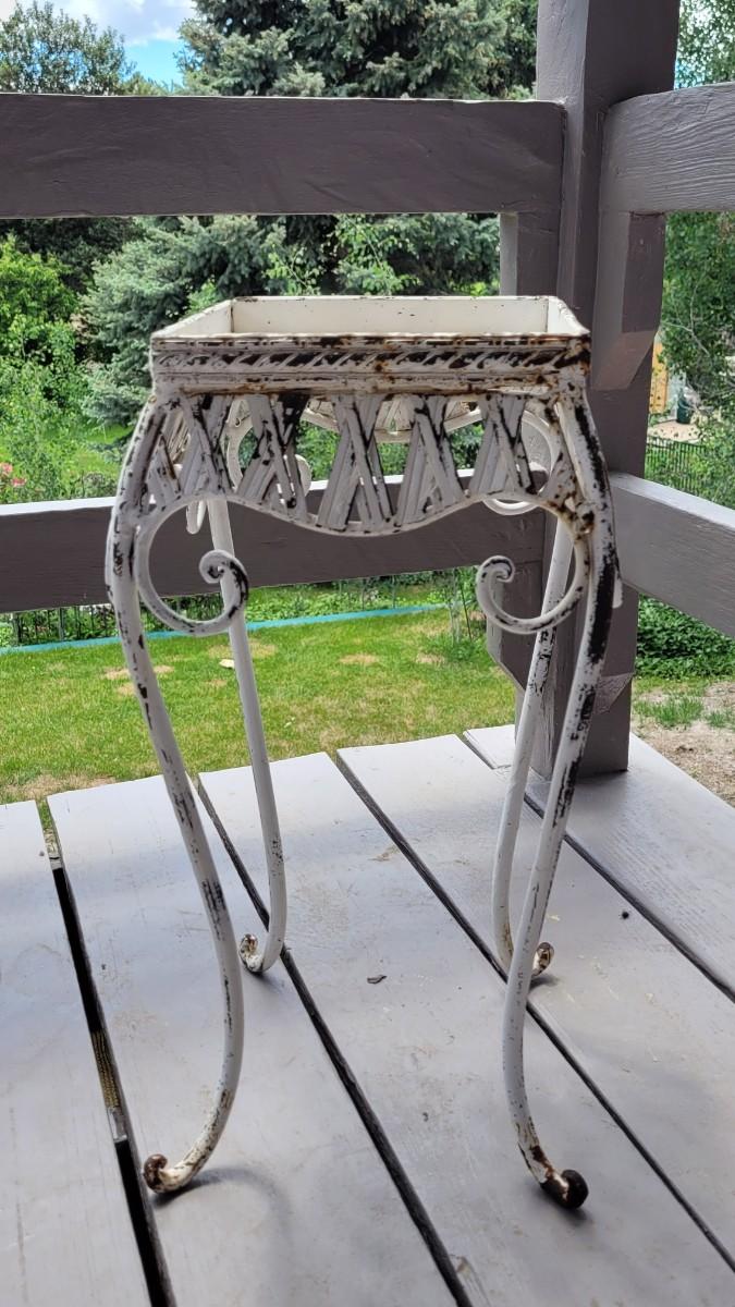 This stand has rusty white paint giving is a vintage appeal. It is nice and sturdy.