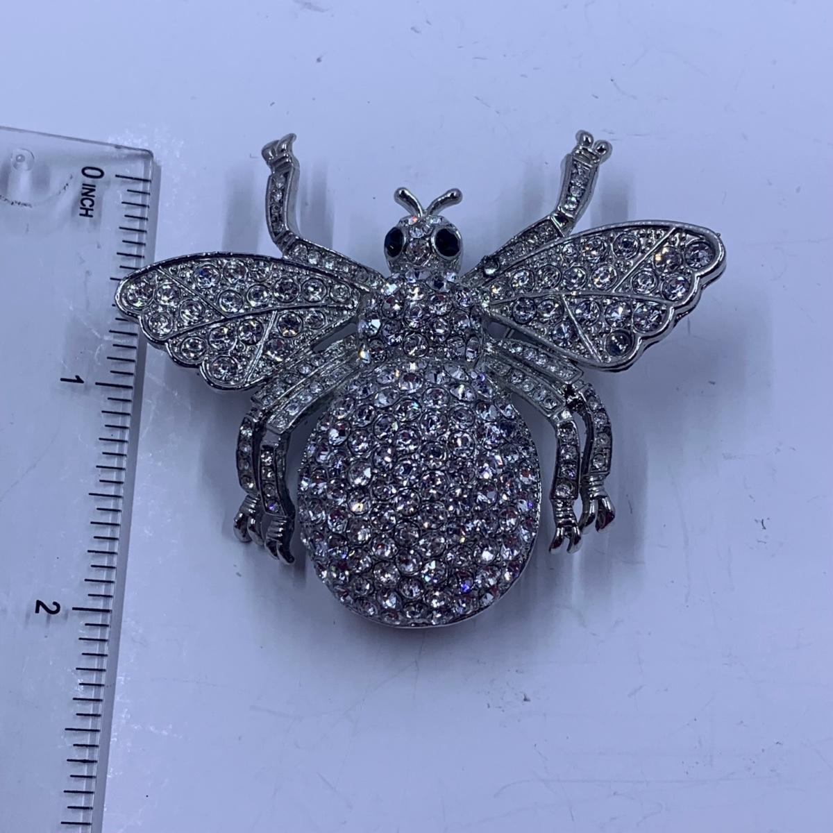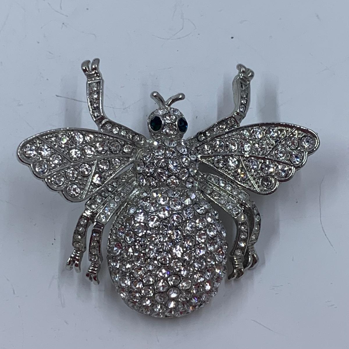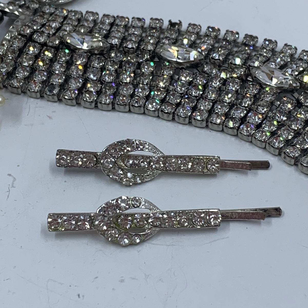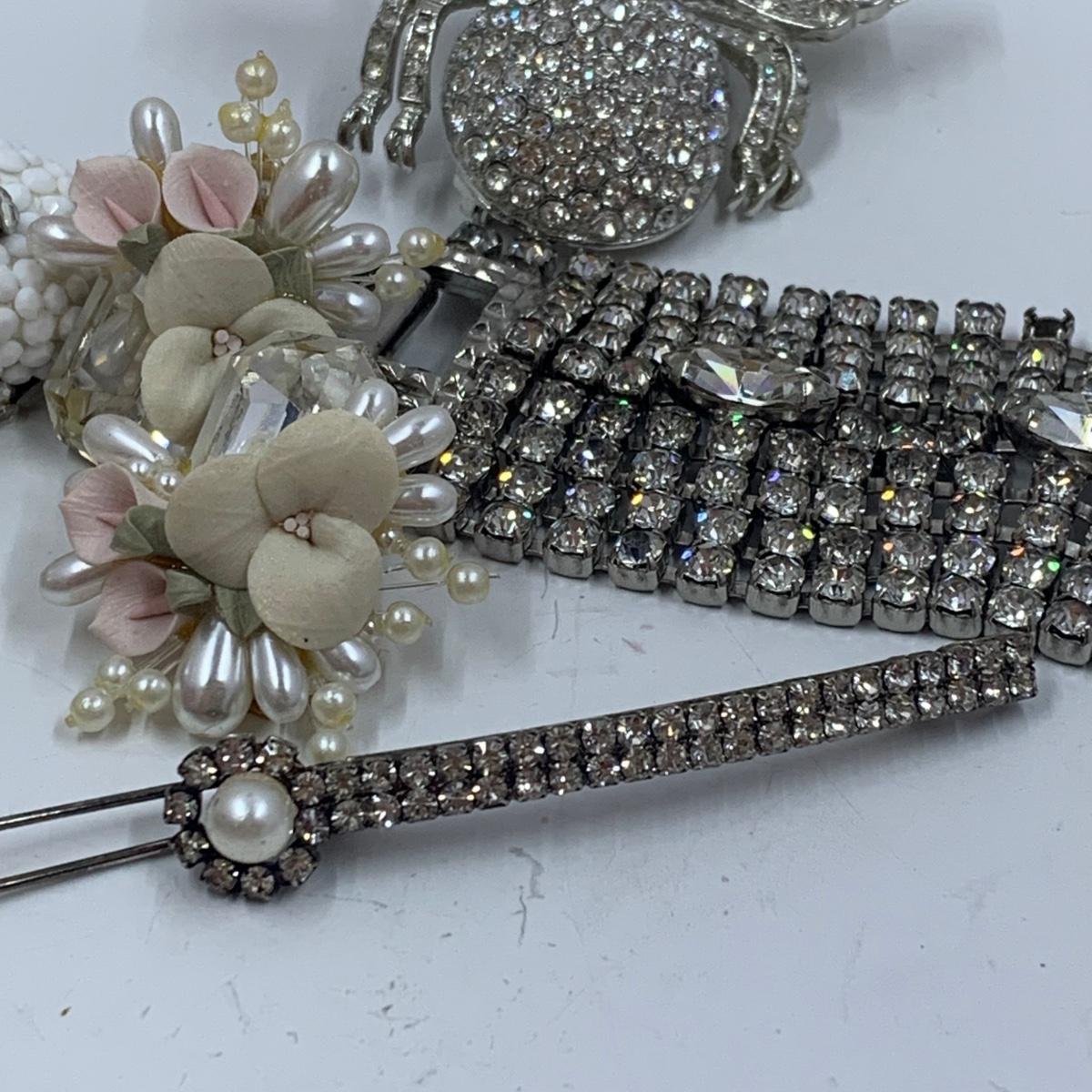 Lot 195: Silvertone & Rhinestones: Pierced & Clip Earrings, Hair Pins, Bracelet & Beetle Brooch