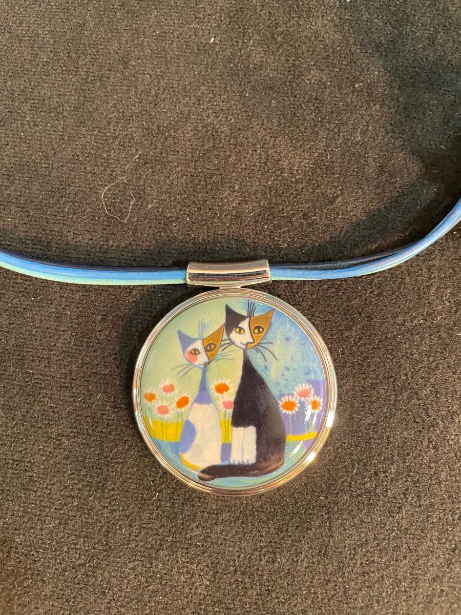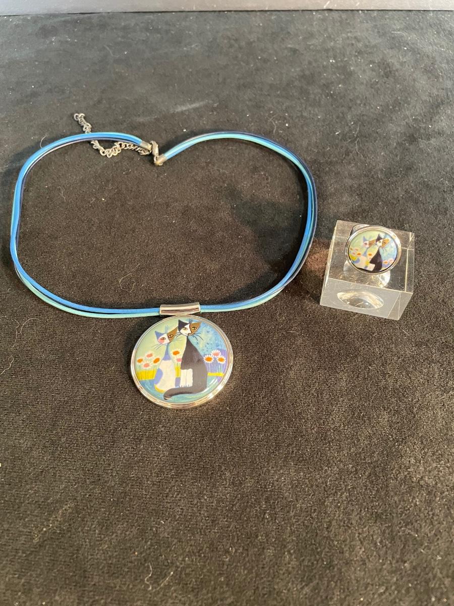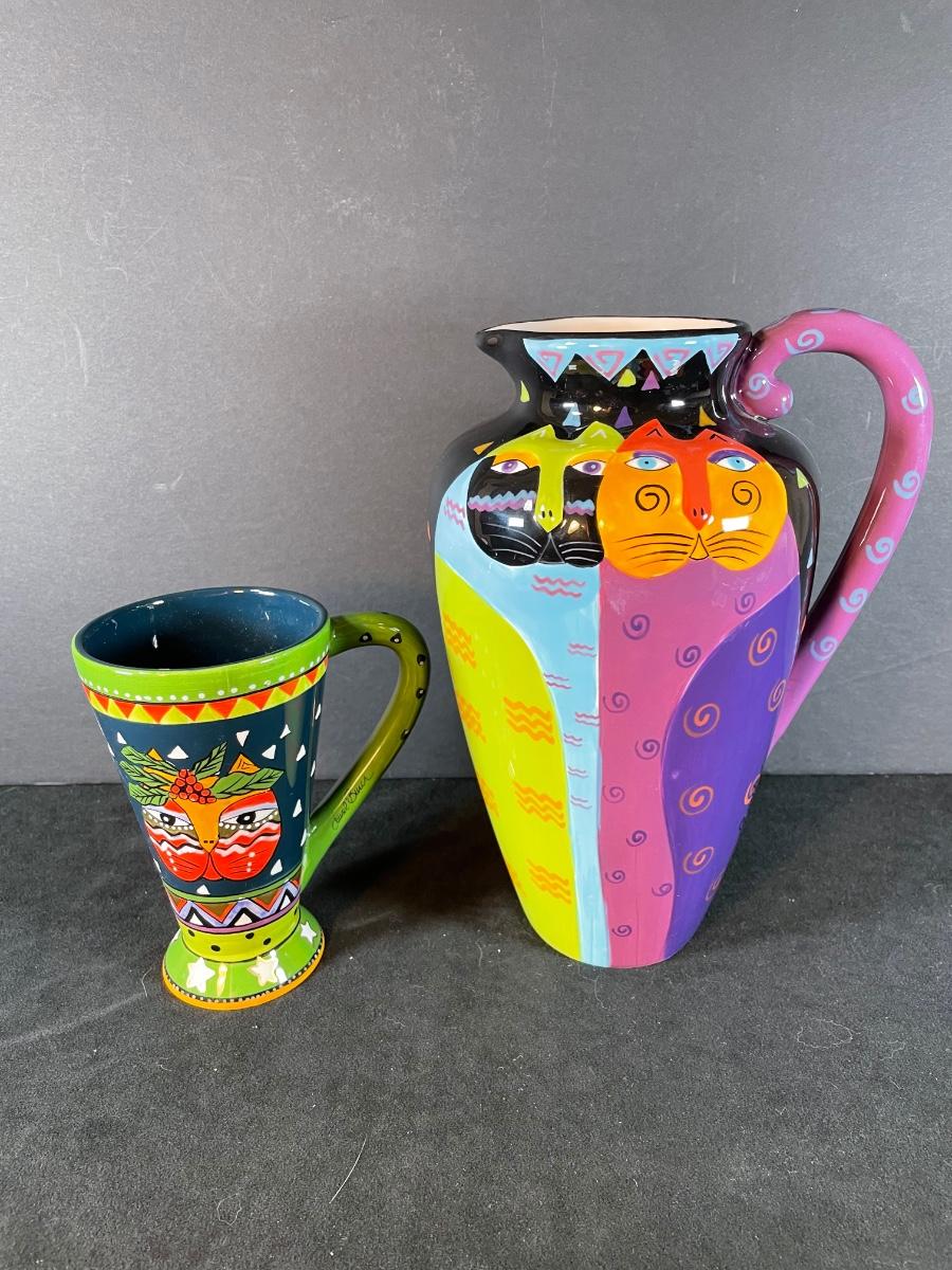 Goebel necklace and ring, 3 pot holders, Funky Cats Colring Book, Goebel cat figurine, Cat Encyclopedia, Tote bag-mug and Pitcher by Laurel Burch