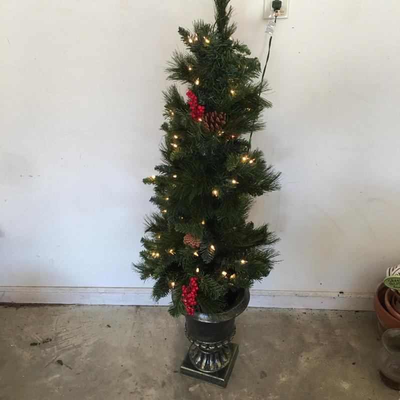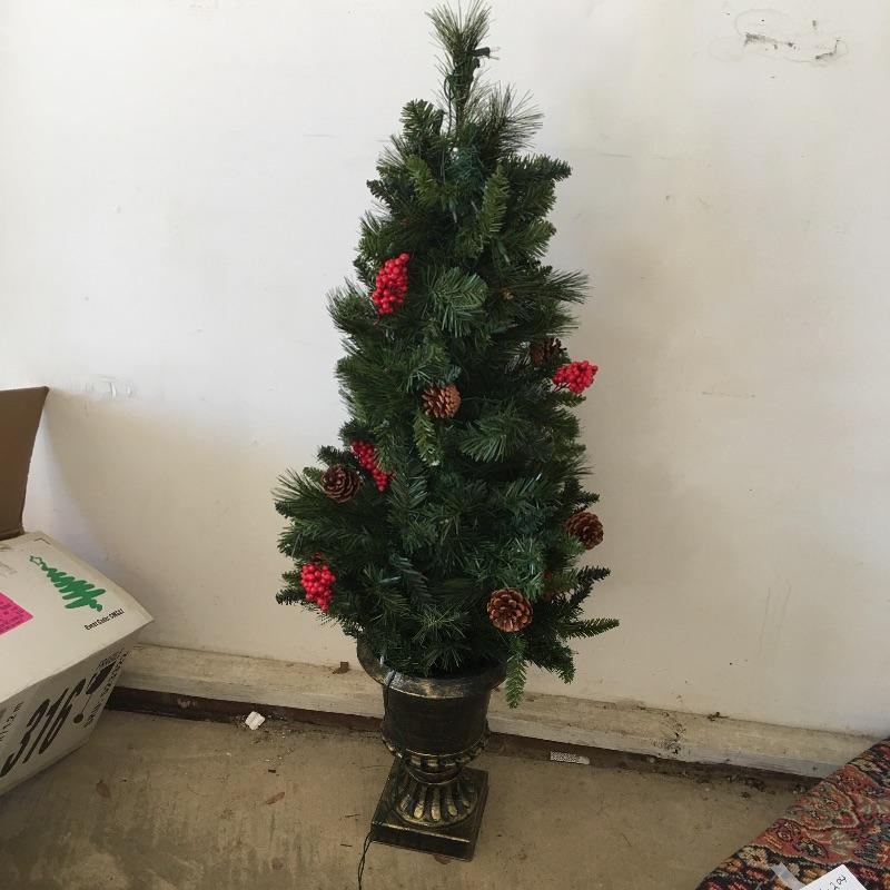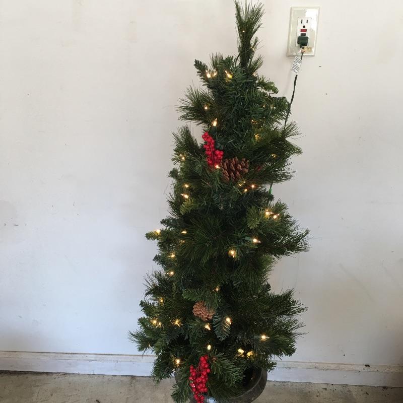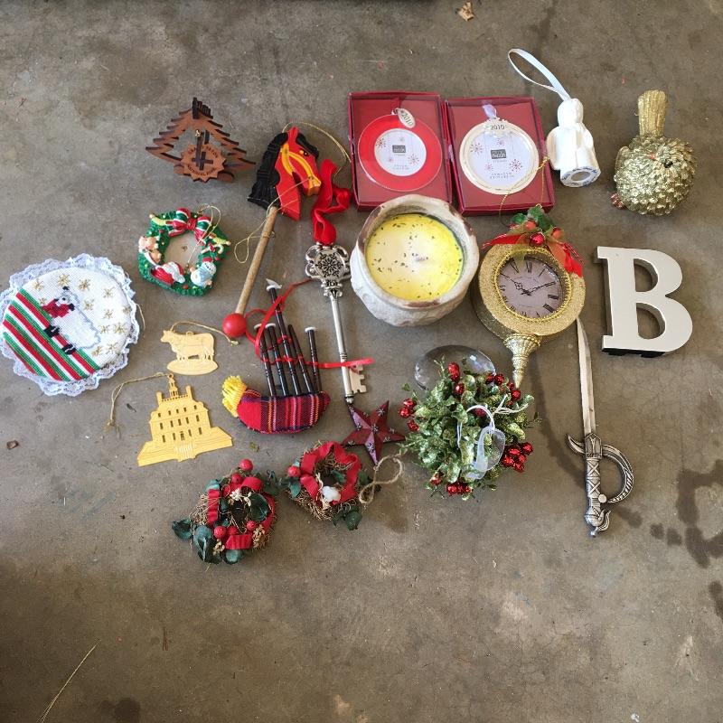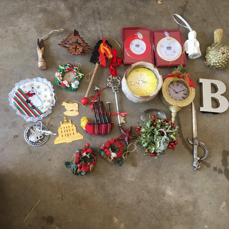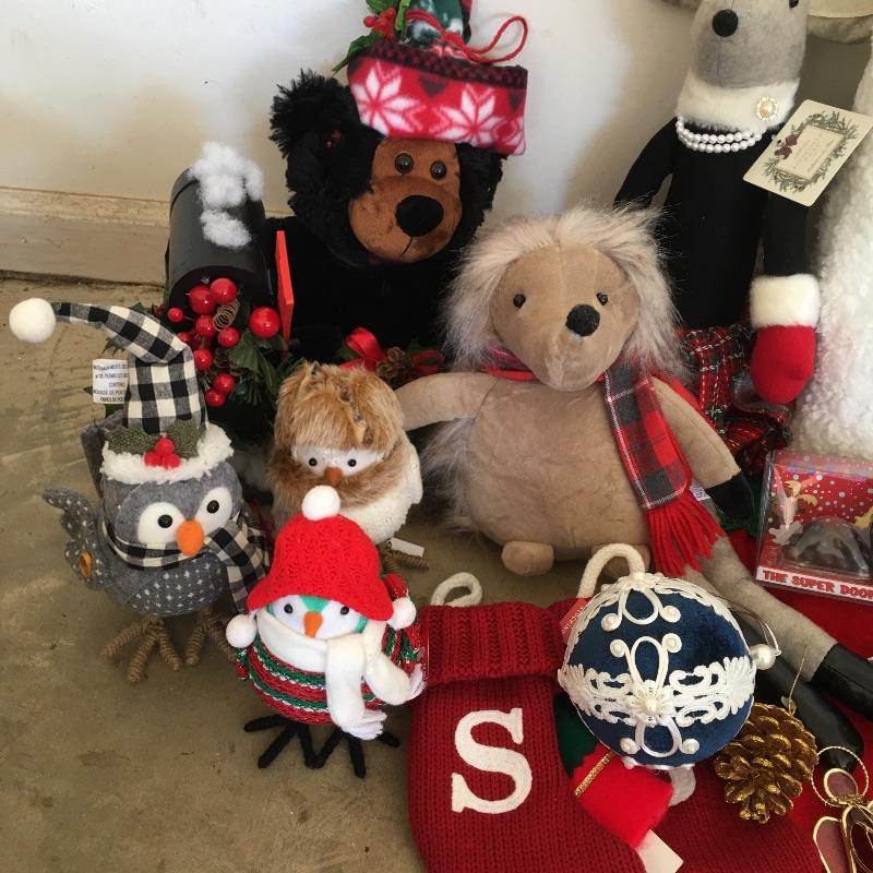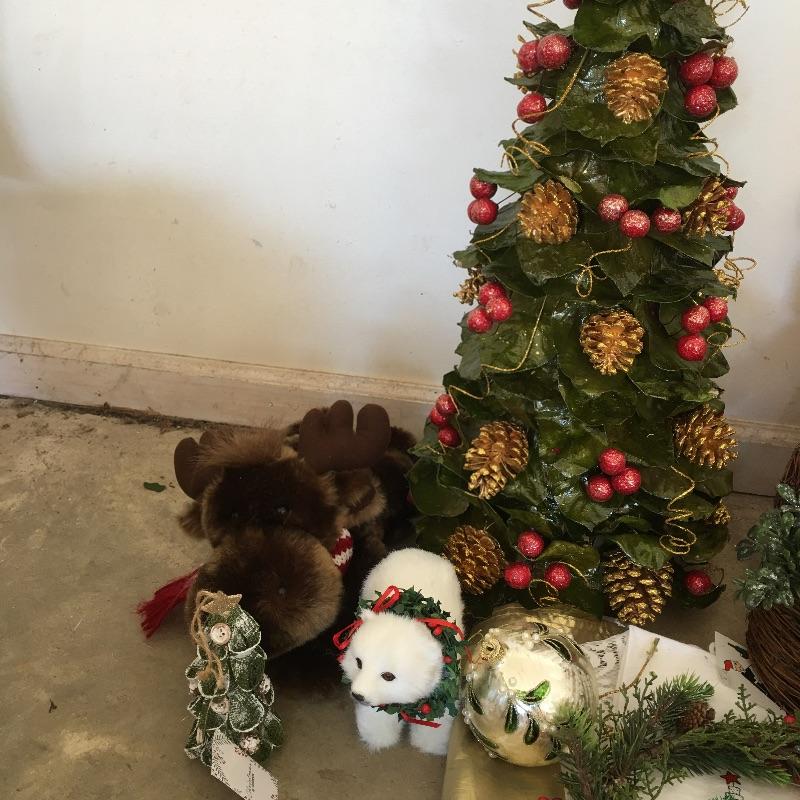 This large Christmas lot will have you in the holiday mood In no time. Lot includes 7.5 ft. lighted tree, 4 ft. lighted tree, wrapping paper, ornaments, candles, pillows, wreaths and a large selection of Christmas decorations and more.