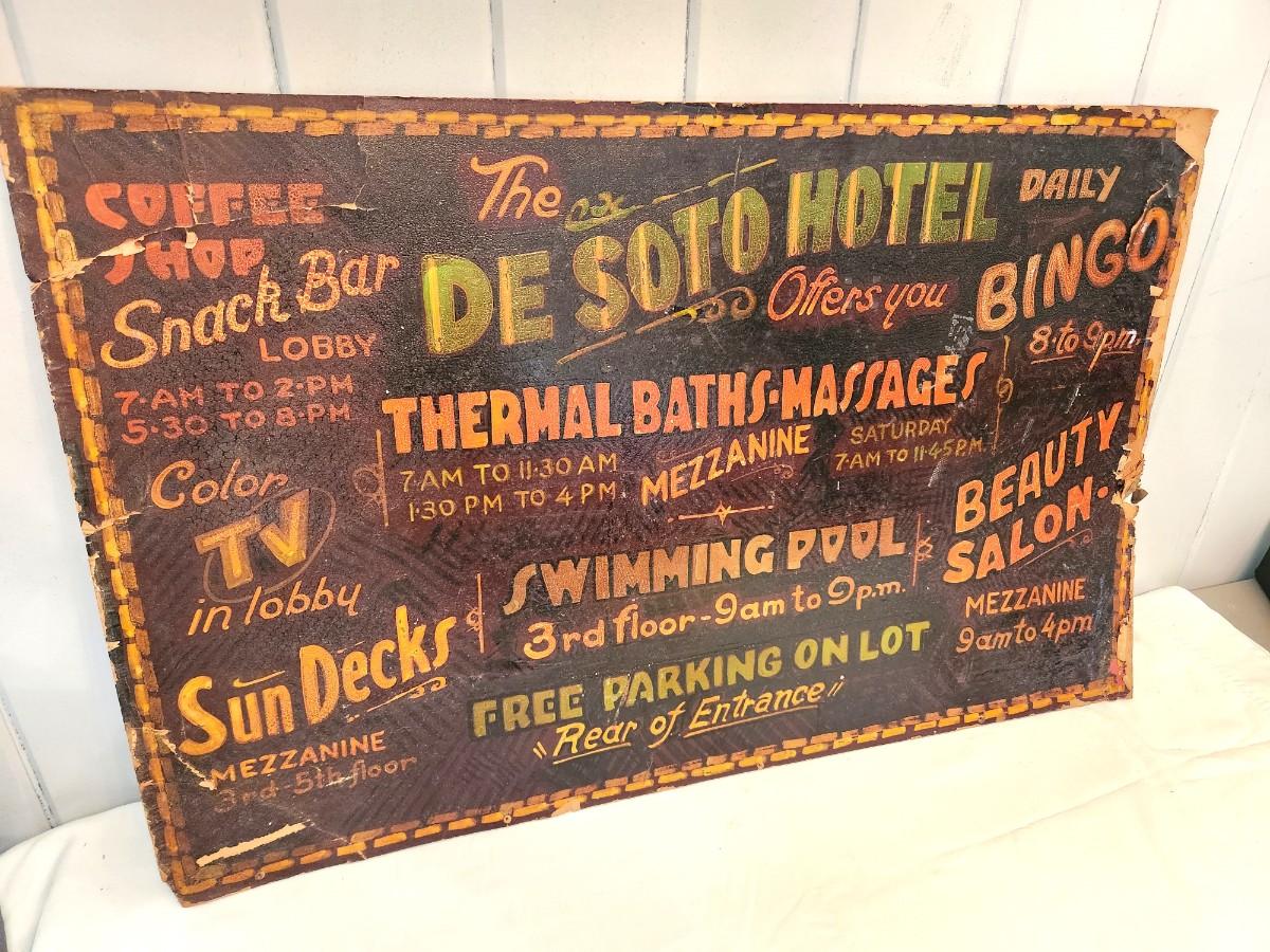 Lot #195 Fantastic Vintage Hot Springs Arkansas DeSoto Hotel Sign