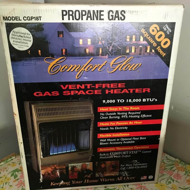 New-in-box Comfort Glow gas space heater. Uses propane gas and heats up to 600 square feet. No shipping. Local pickup only.